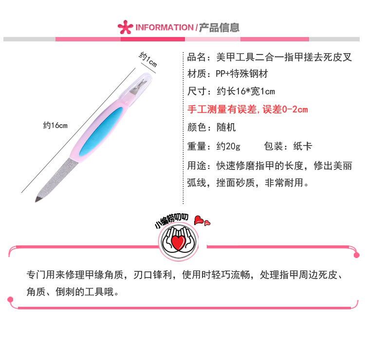 Nail File Nail Tool Exfoliating Fork Stainless Steel Supplies Double Head Multifunctional Polishing Beginner Manicure Tool