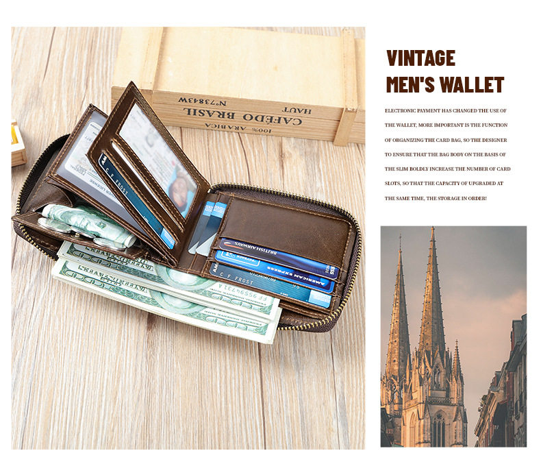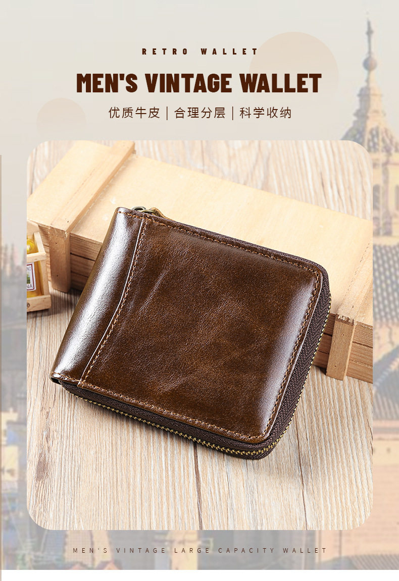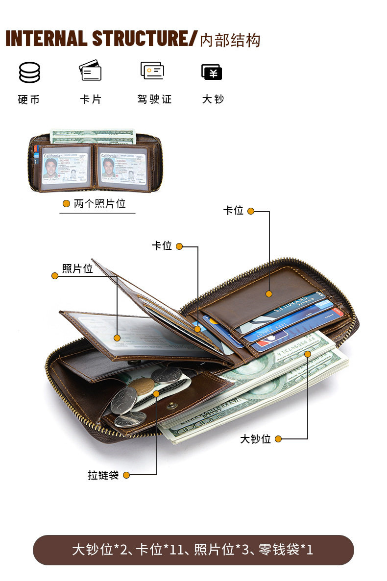 Top Layer Cowhide Multifunctional Coin Purse Anti-theft Card Bag Multi-card Retro Men's Genuine Leather High-end Wallet