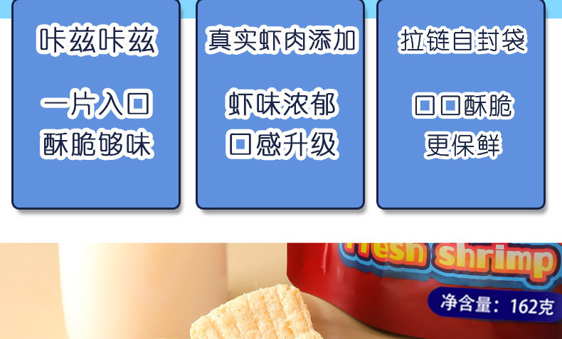 | Packaging specifications | 162g [1 bag] shrimp flavor + 182g [1 bag] seaweed tips,42g fresh shrimp slices [4 packs],162g [1 bag] shrimp flavor,162g [2 bags] shrimp flavor,42g fresh shrimp slices [8 get 2 free] 10 packs,162g [3 bags] shrimp flavor,162g [4 bags] shrimp flavor |