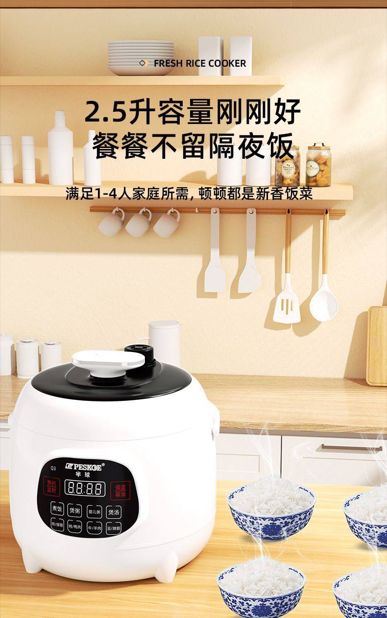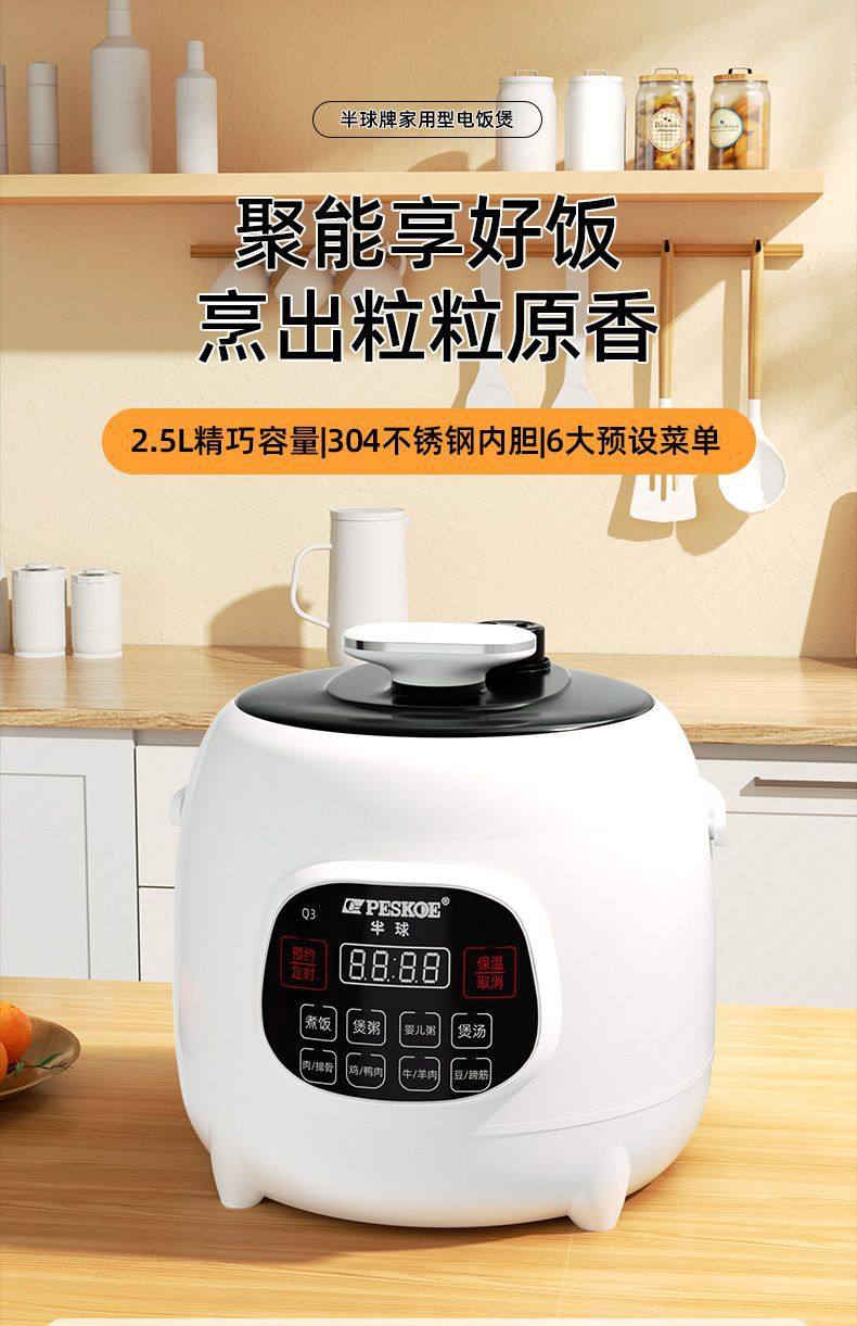 Hemispheric Electric Pressure Cooker Household Mini Pressure Cooker Multi-Functional Smart 2L 2.5 Liter 2-Person Cooking Small Rice Cooker*