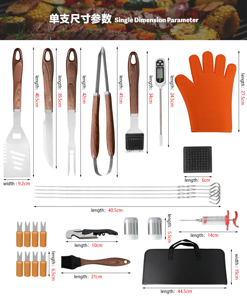 | Product name | Stainless steel barbecue tool set of 26 pieces |