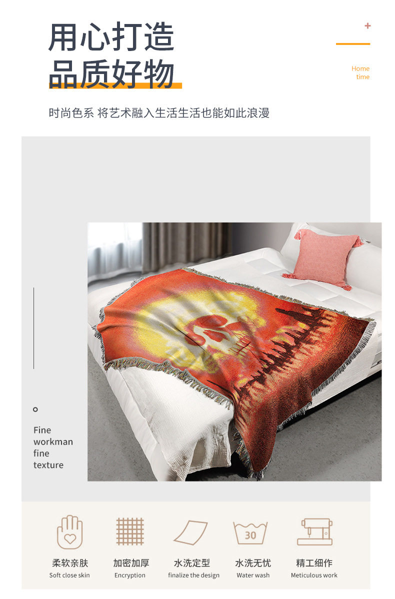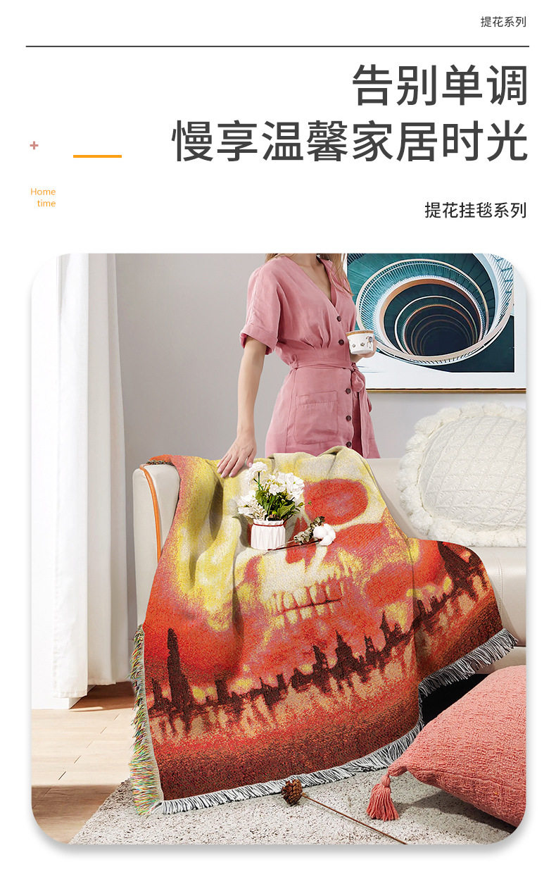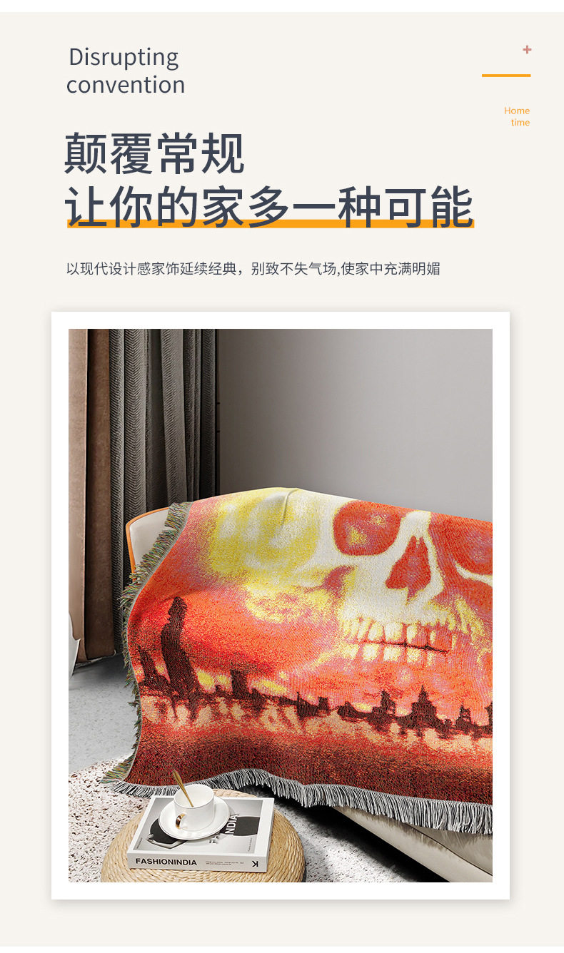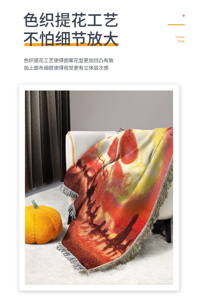 Customized Halloween Skull Tapestry Amazon Home Carpet Mat Cross-Border Jacquard Thread Blanket Background Wall Blanket Wholesale
