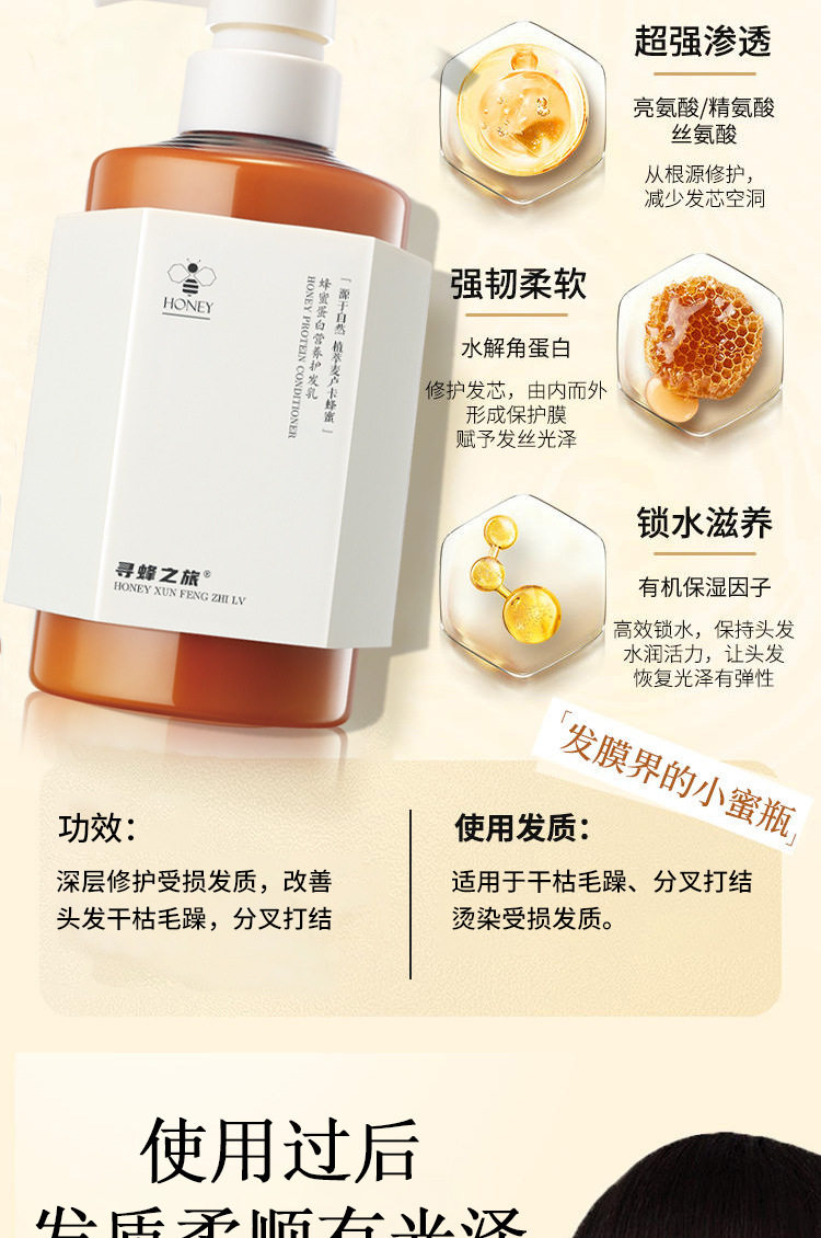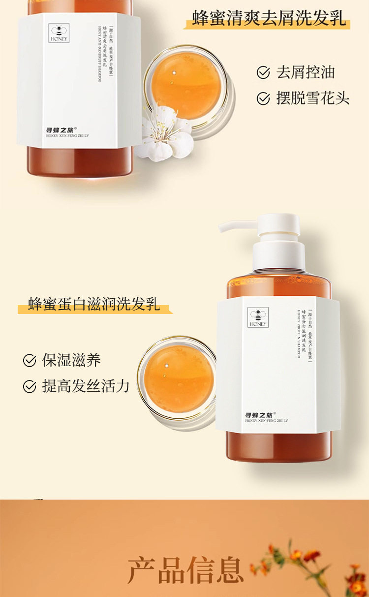 genuine goods Bee Search Tour Honey Protein Moisturizing Shampoo Dandruff Control Oil Fluffy Wash and Protect suit Women Lasting Fragrance