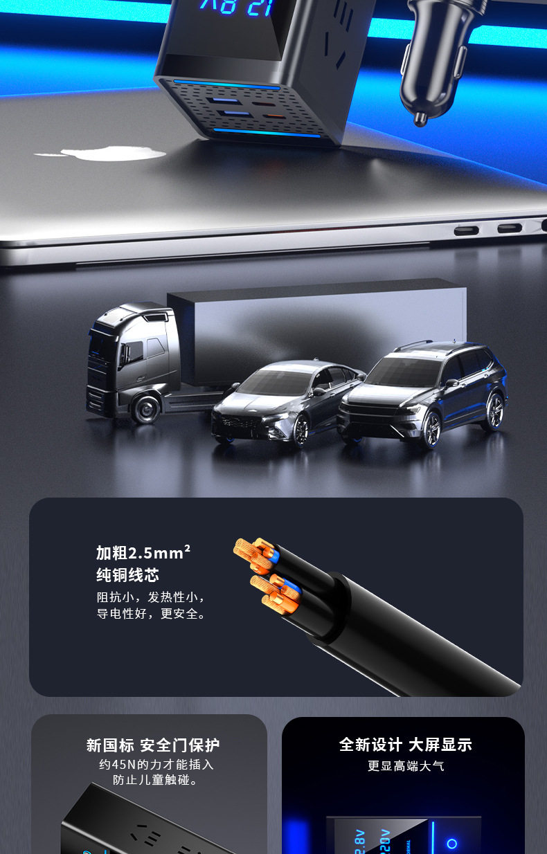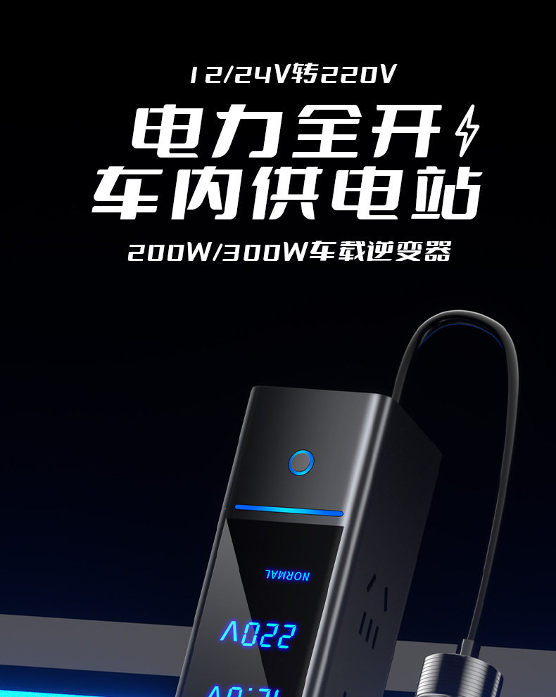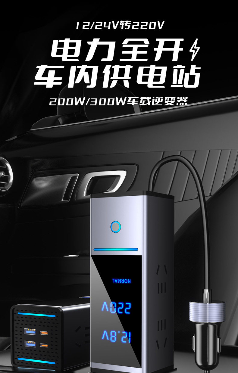 300W car inverter socket car charger fast charge 2V24V to 220V car power cigarette lighter
