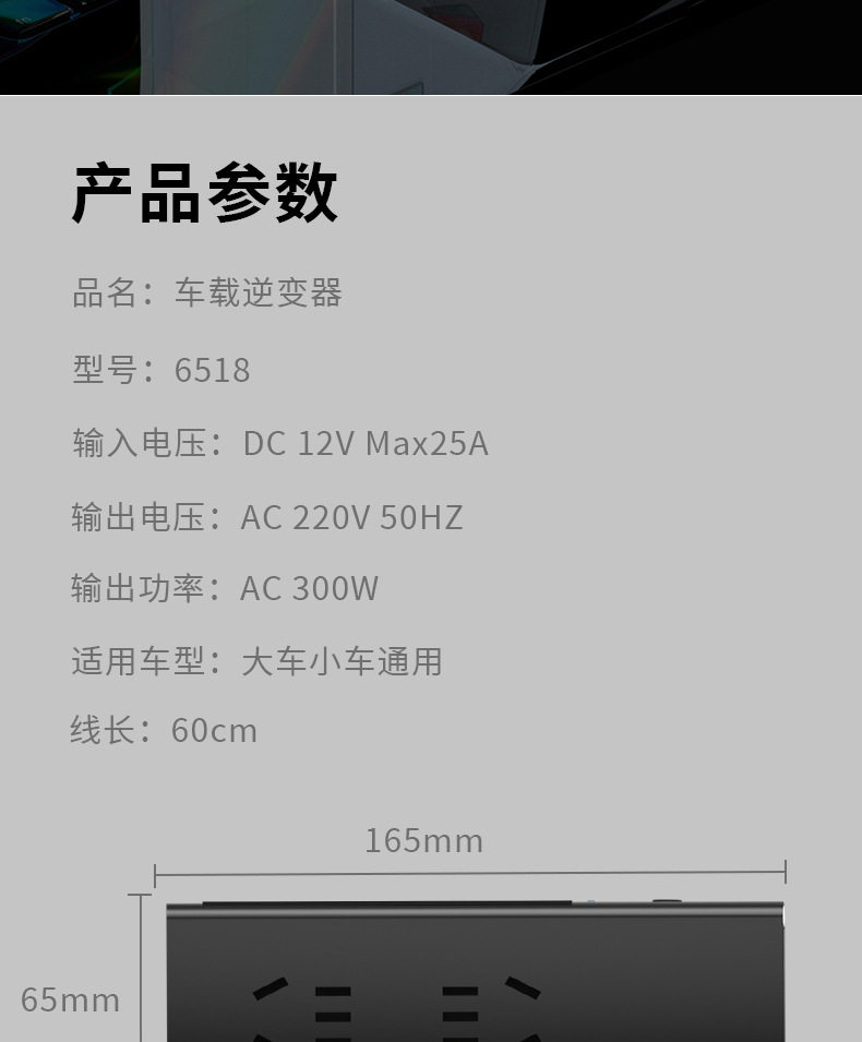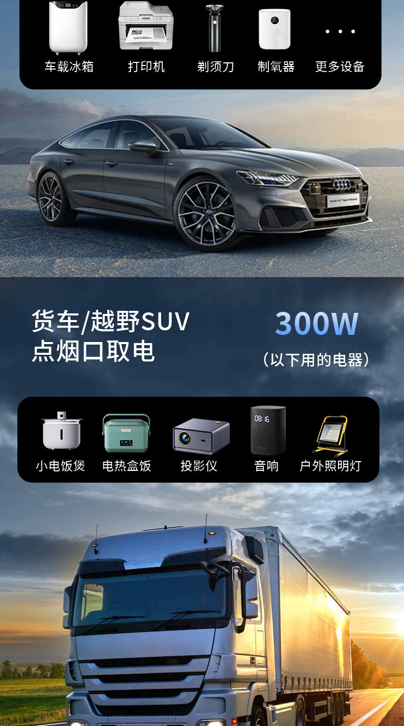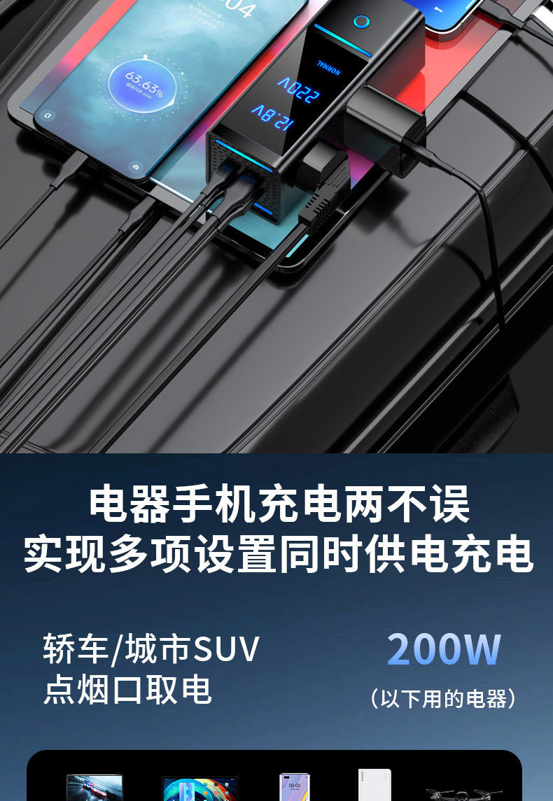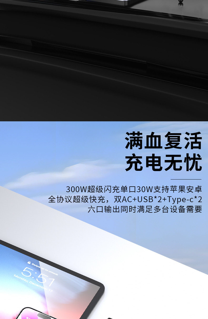 | Model | 6518 gray (200w12v fast charging model),6518s gray (200w12v/24v fast charging universal model),6518-pro (300w12v fast charging model),6518s-pro gray (300w12v/24v fast charging universal model) |