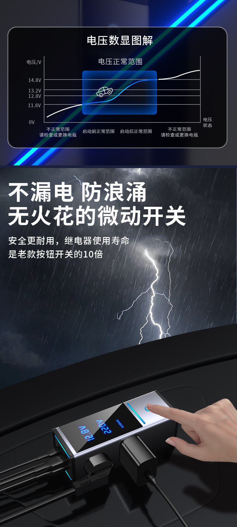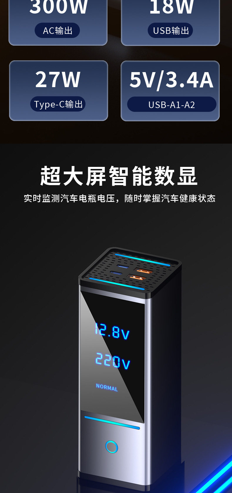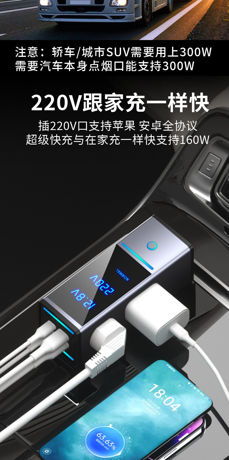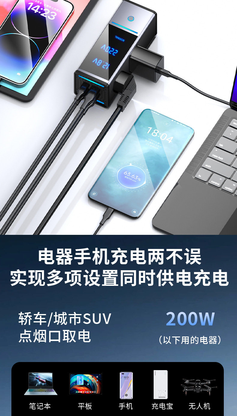 | Model | 6518 gray (200w12v fast charging model),6518s gray (200w12v/24v fast charging universal model),6518-pro (300w12v fast charging model),6518s-pro gray (300w12v/24v fast charging universal model) |