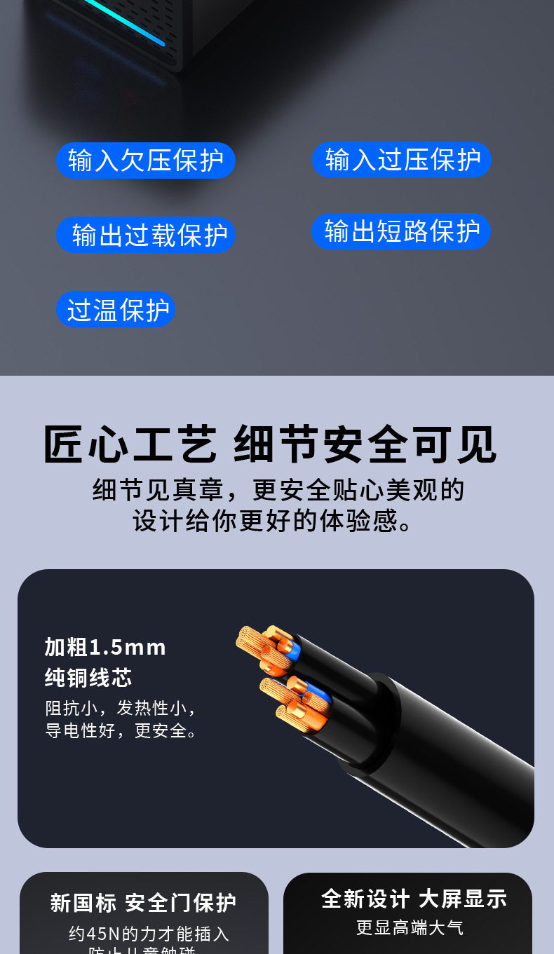 | Output current | 4 usb smart fast charging ports: type-cpd65w+qc3.0 45w+5v/3.4a. |
