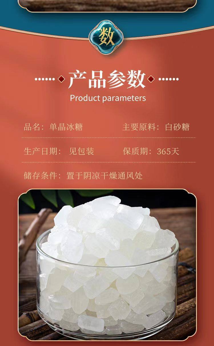 | Packaging specifications | [supermarket export quality] 200g*1 bag,[preferred first-class monocrystalline rock sugar] 200g*3 bags,[same style as supermarkets] 200g*5 bags,[good choice for storage at home] 200g*10 bags,[supermarket wholesale price] 200g*20 bags,[convenient storage] 400g*1 bag,[direct hair from the manufacturer] 400g*3 bags,[manufacturer direct hair] 400g*5 bags,[individually packaged] 400g*10 bags,[manufacturer direct hair] 100g*1 bag |