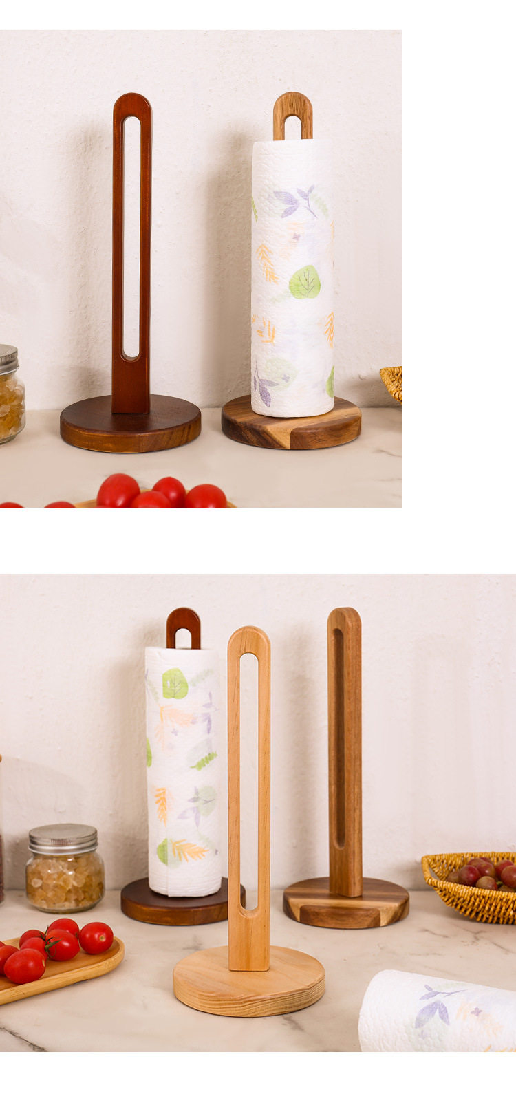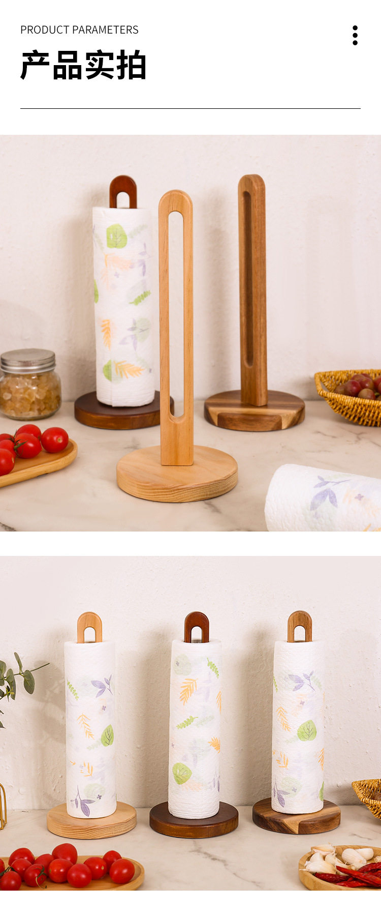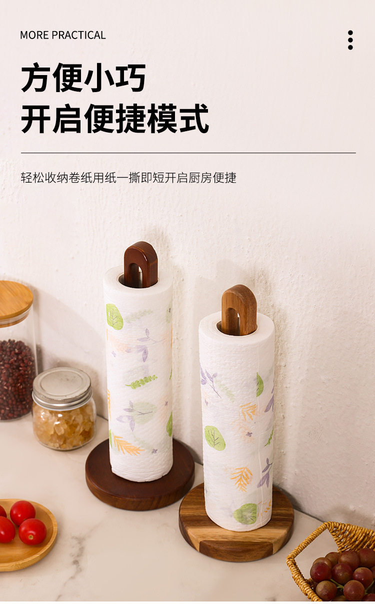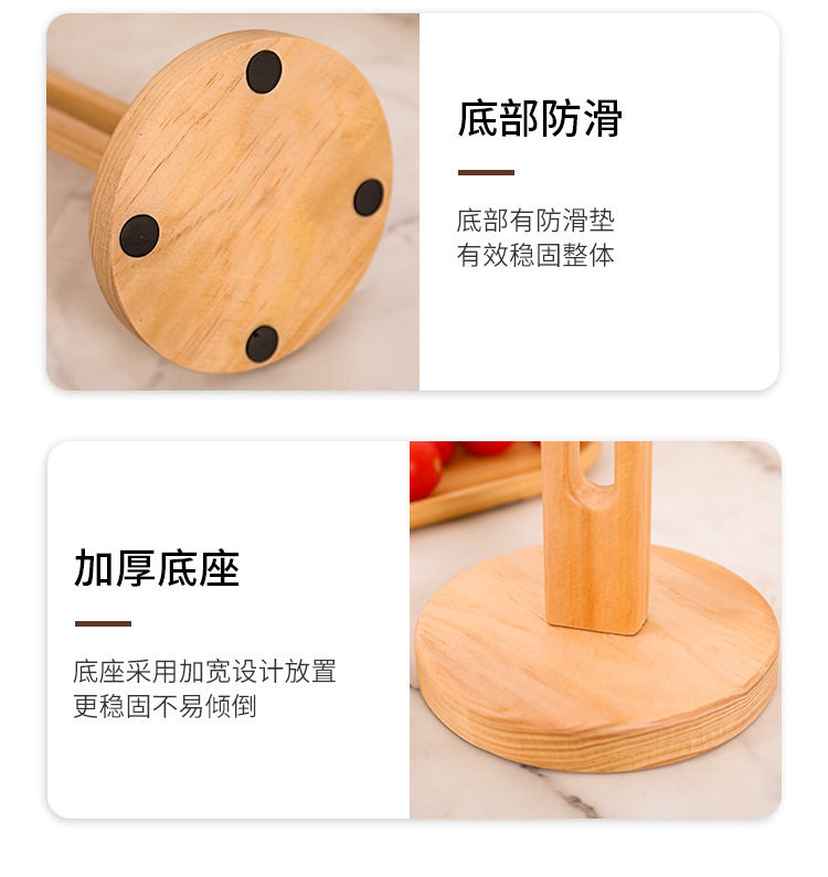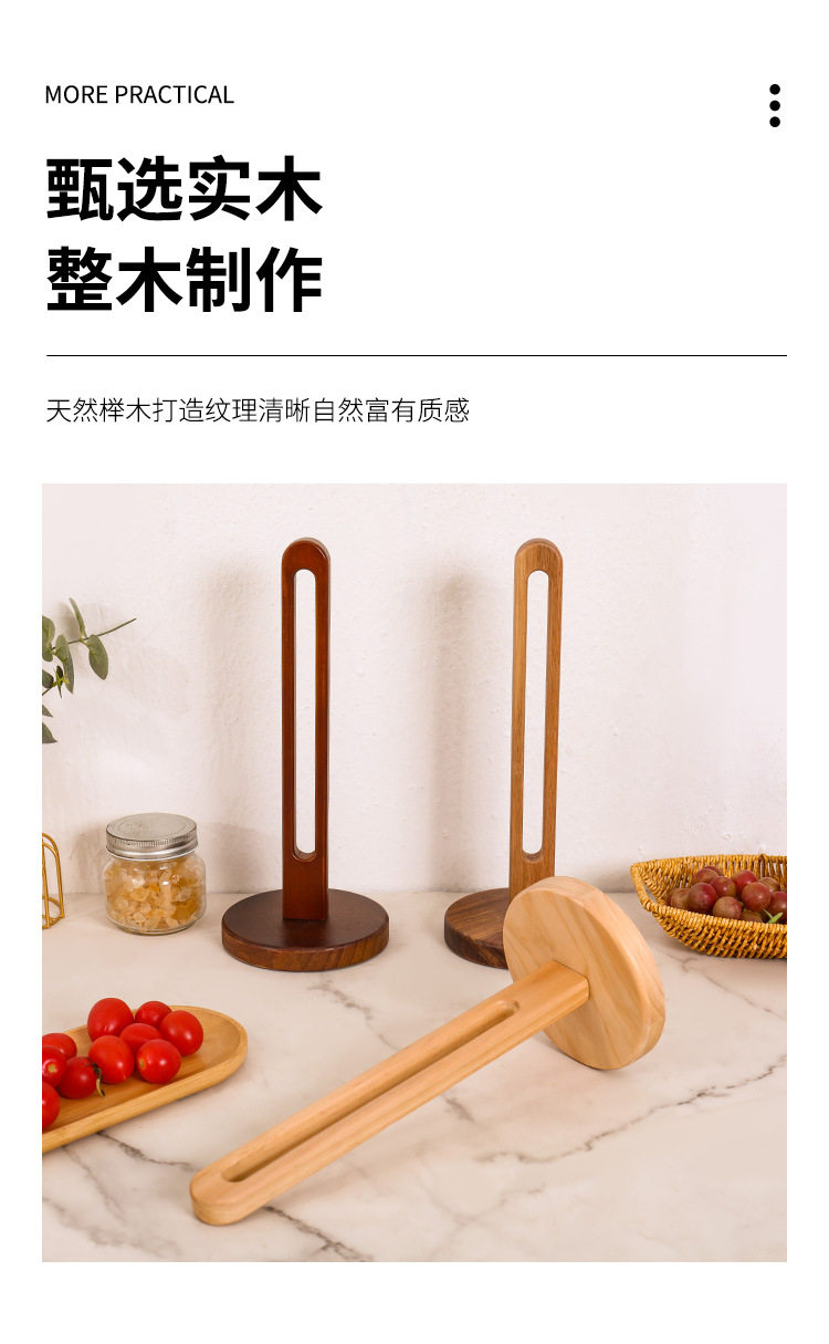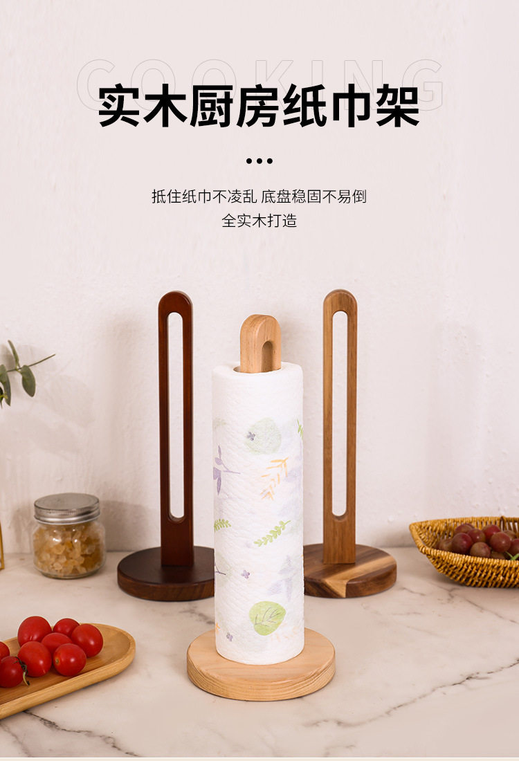 Wooden Tissue Rack Kitchen Punch-free Roll Paper Storage Rack Rack Rag Preservation Film Preservation Bag Vertical Solid Wood Storage Rack