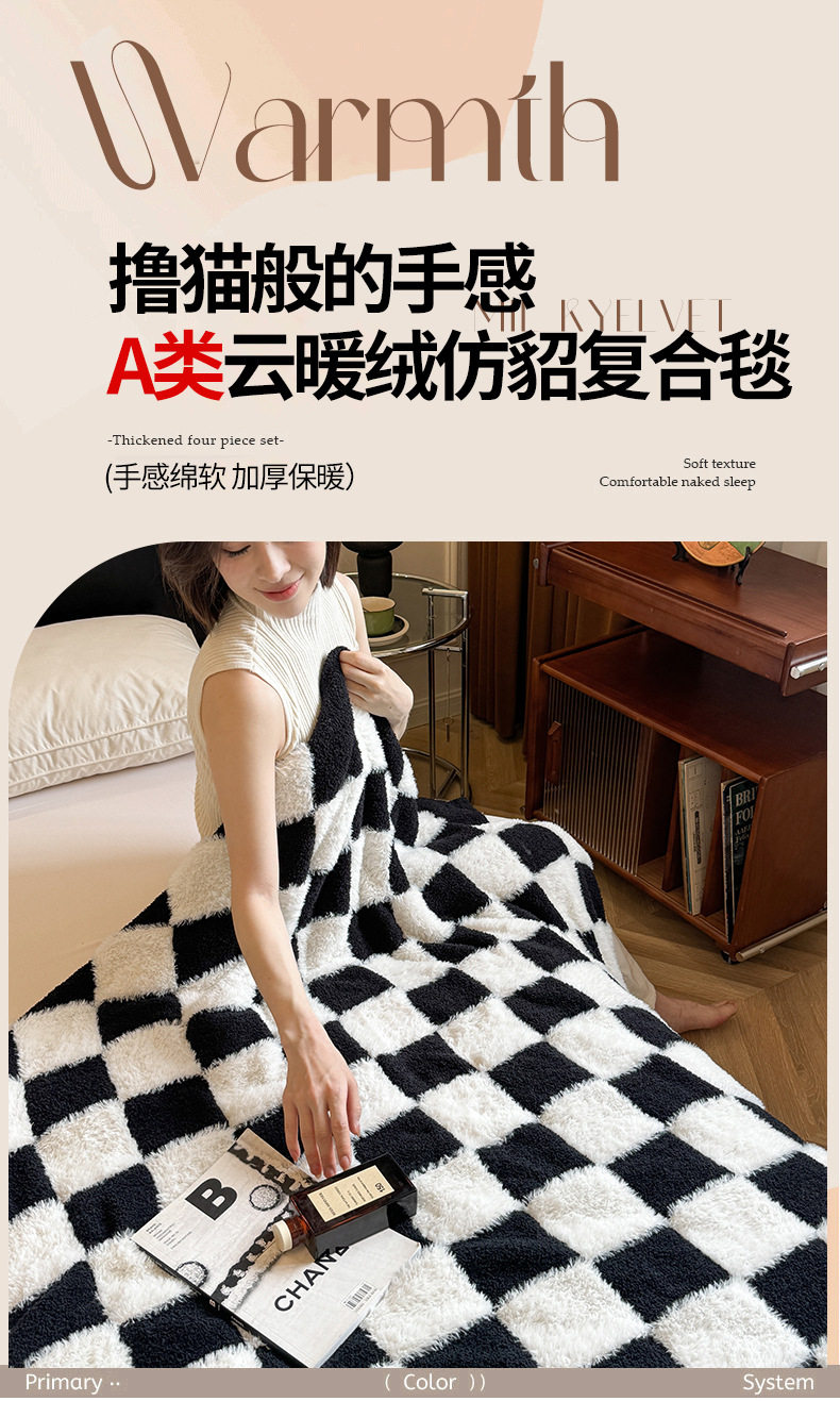 2024 New Class A Cloud Warm Velvet Imitation Sable Composite Blanket Casual Office Knitted Blanket Half Velvet Blanket Blanket