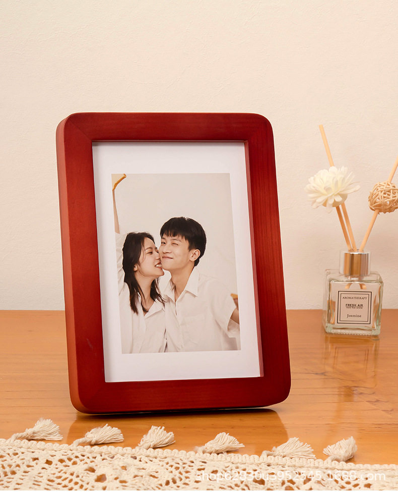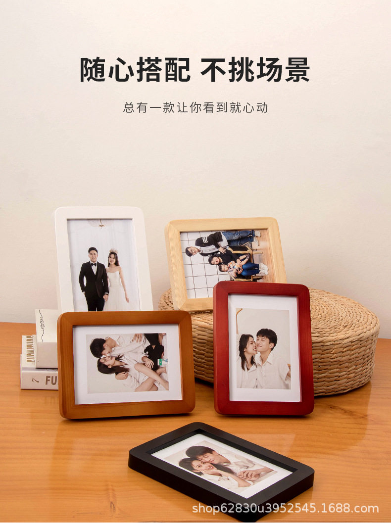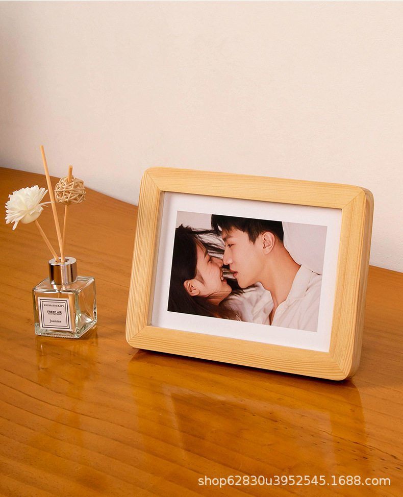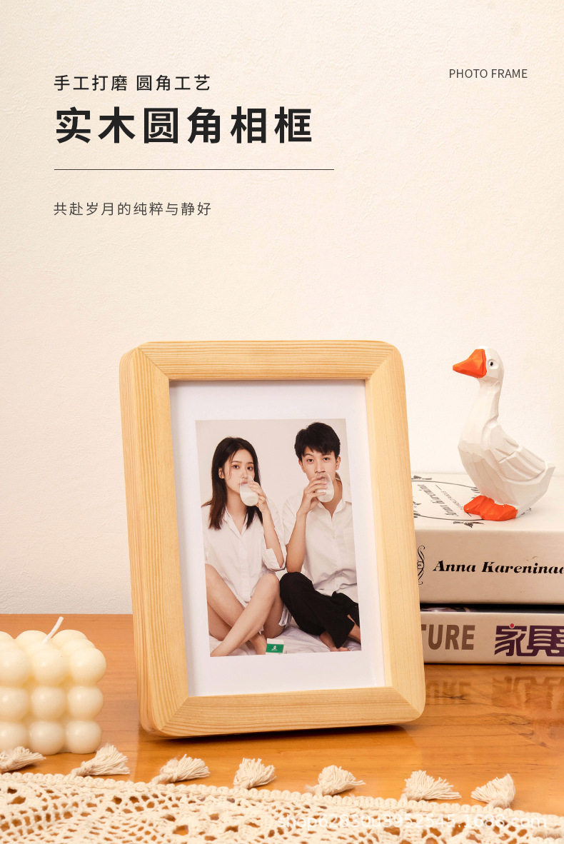 Solid wood rounded photo frame table wholesale creative picture frame wall mounting photo couple children mini photo frame