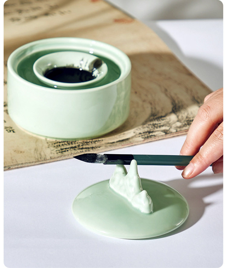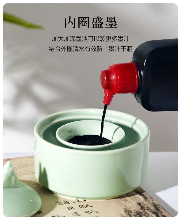 Multi-functional non-drying ink pool celadon hot pot inkstone ink pool ink bowl study four treasures calligraphy supplies ink cartridge