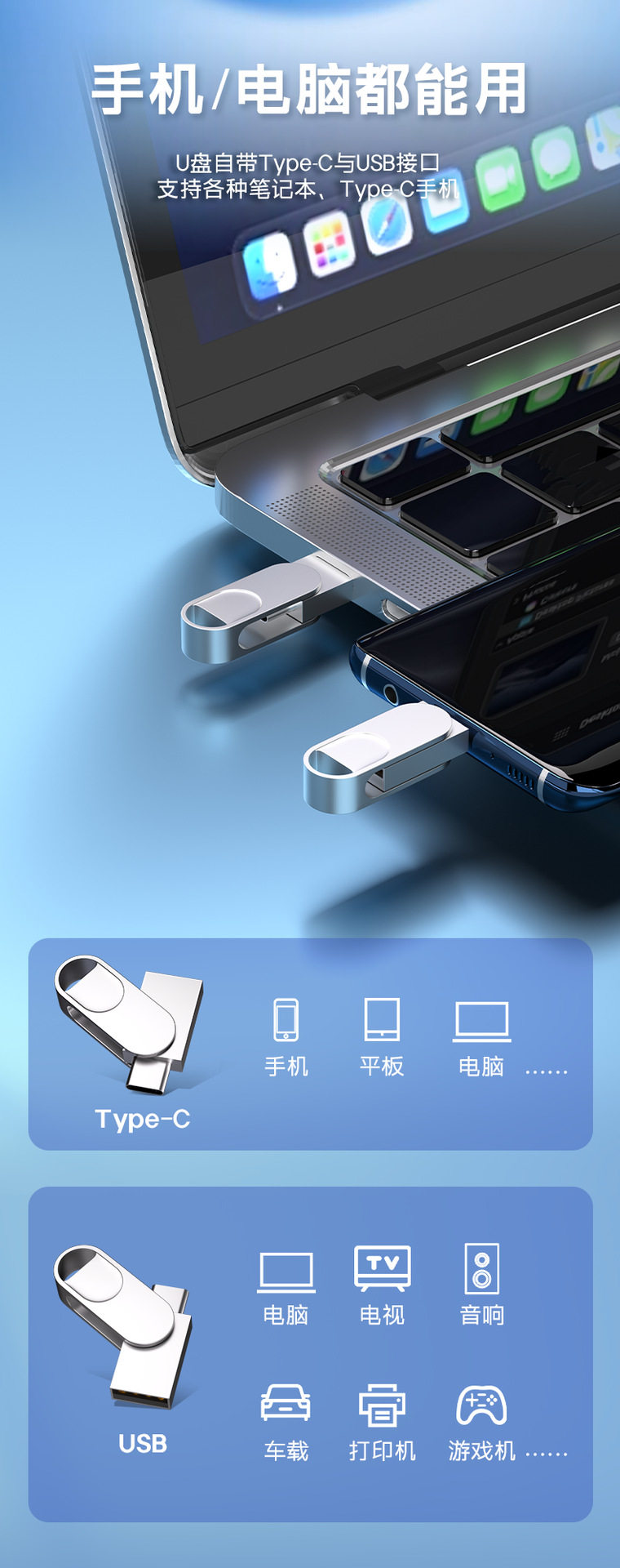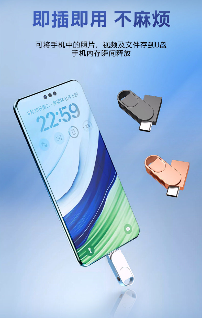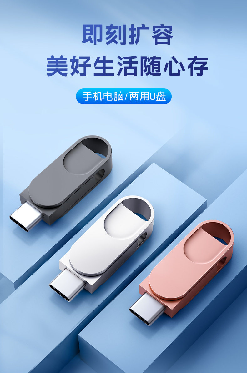 Metal Type-C Mobile Phone USB Flash Drive Laser Color Printing Corporate Gift Plug and Play USB Flash Drive Rotating USB Flash Drive