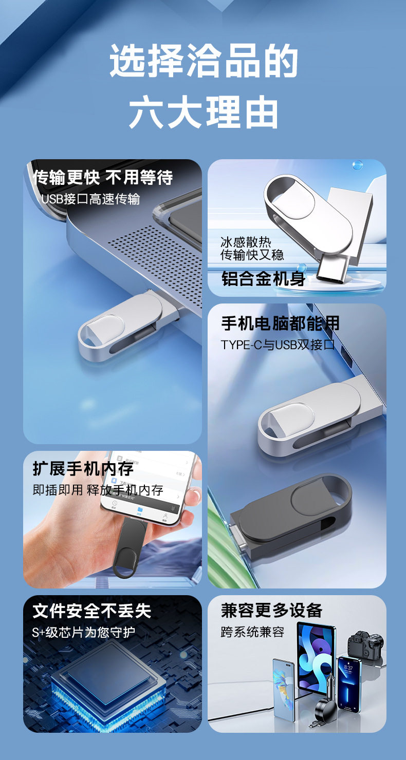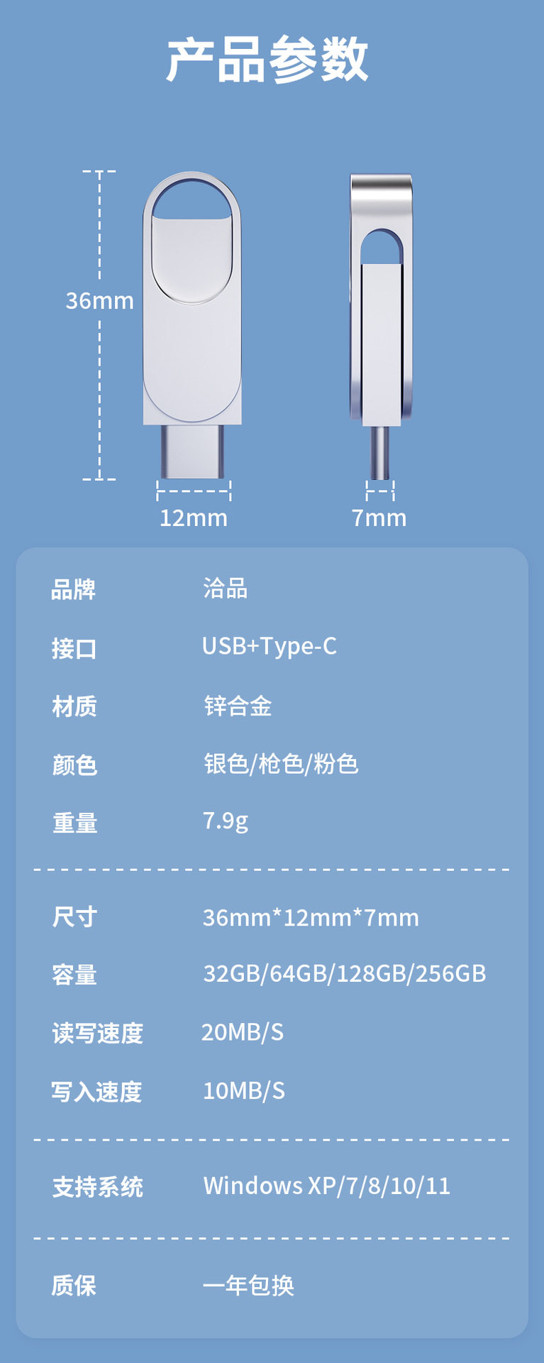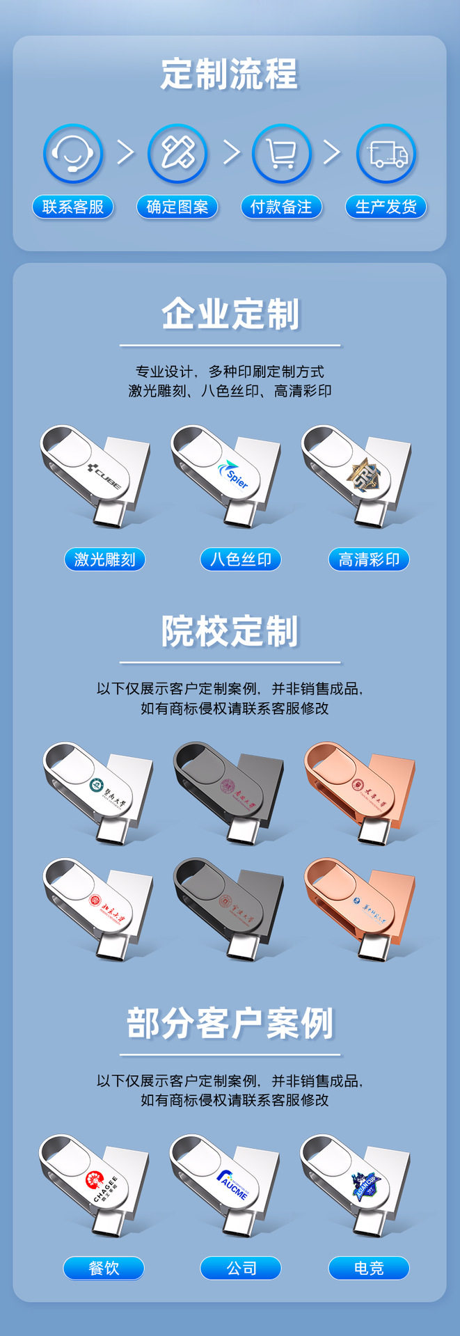 Metal Type-C Mobile Phone USB Flash Drive Laser Color Printing Corporate Gift Plug and Play USB Flash Drive Rotating USB Flash Drive