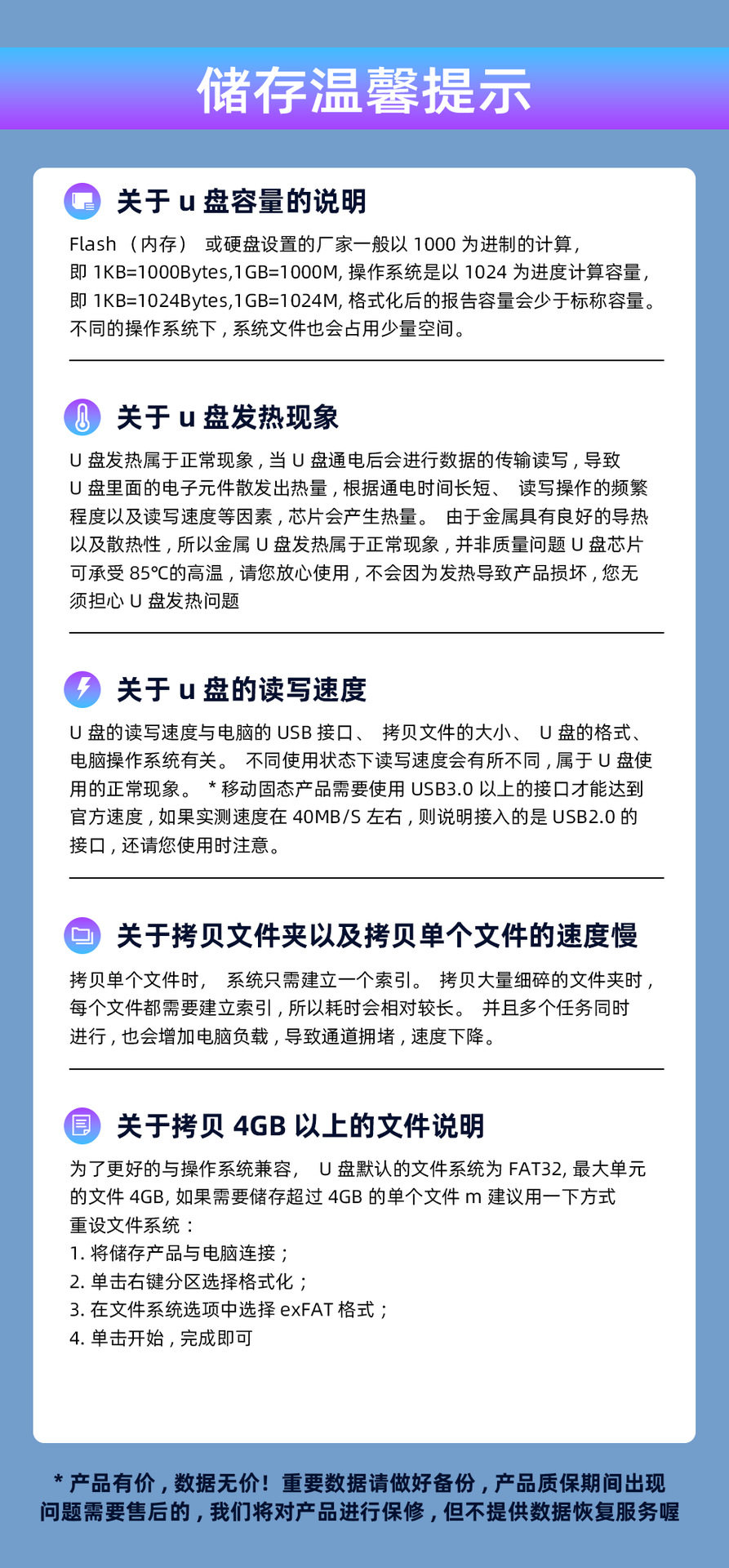 | Capacity | USB2.0 4GB 10MB/s,USB2.0 8GB 10MB/s,USB2.0 16GB 10MB/s,USB2.0 32GB 10MB/s,USB2.0 64GB 10MB/s,USB2.0 128GB 10MB/s,USB3.0 8GB 20MB/s,USB3.0 16GB 30MB/s,USB3.0 32GB 30MB/s,USB3.0 64GB 30MB/s,USB3.0 128GB 30MB/s,USB3.0 256GB 30MB/s,USB3.0 512GB 30MB/s |