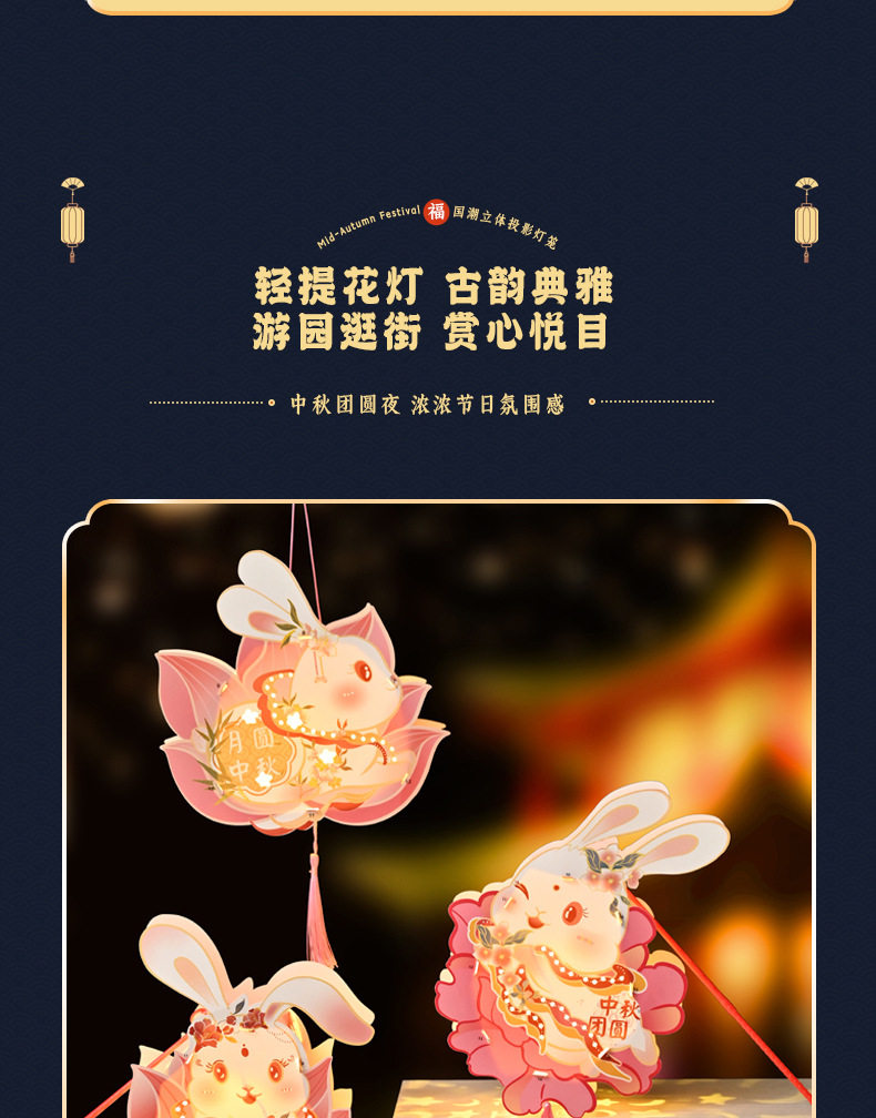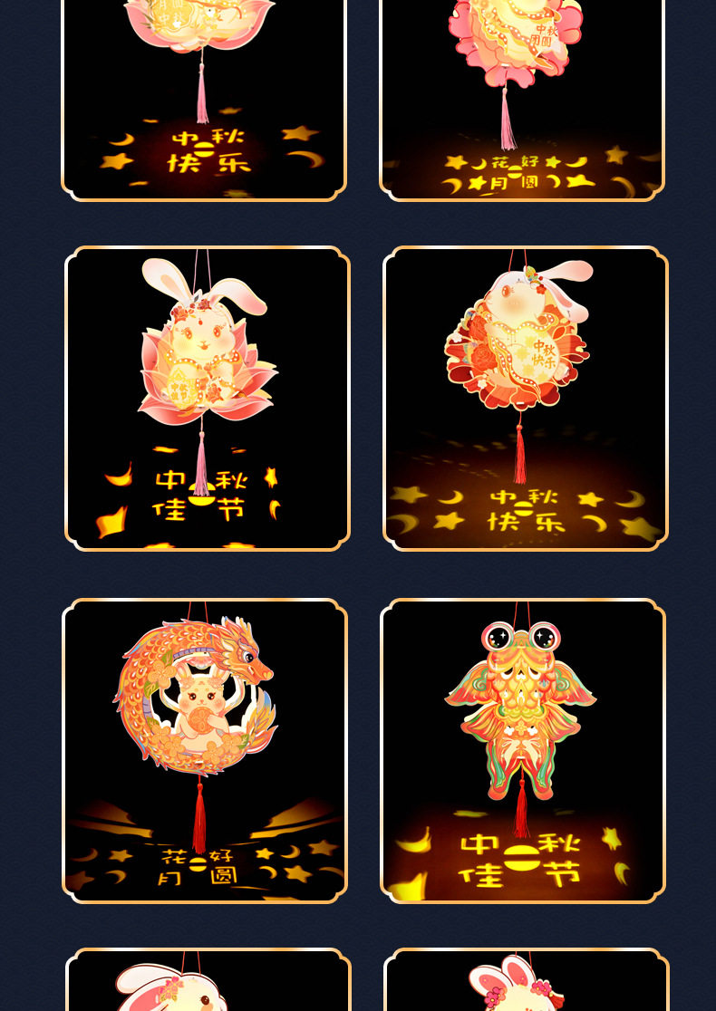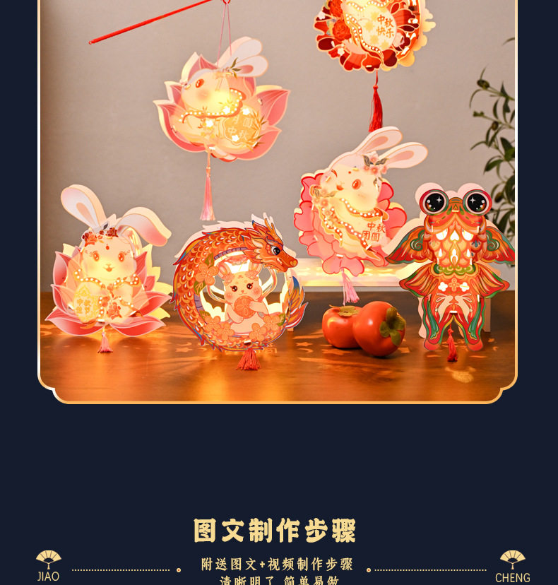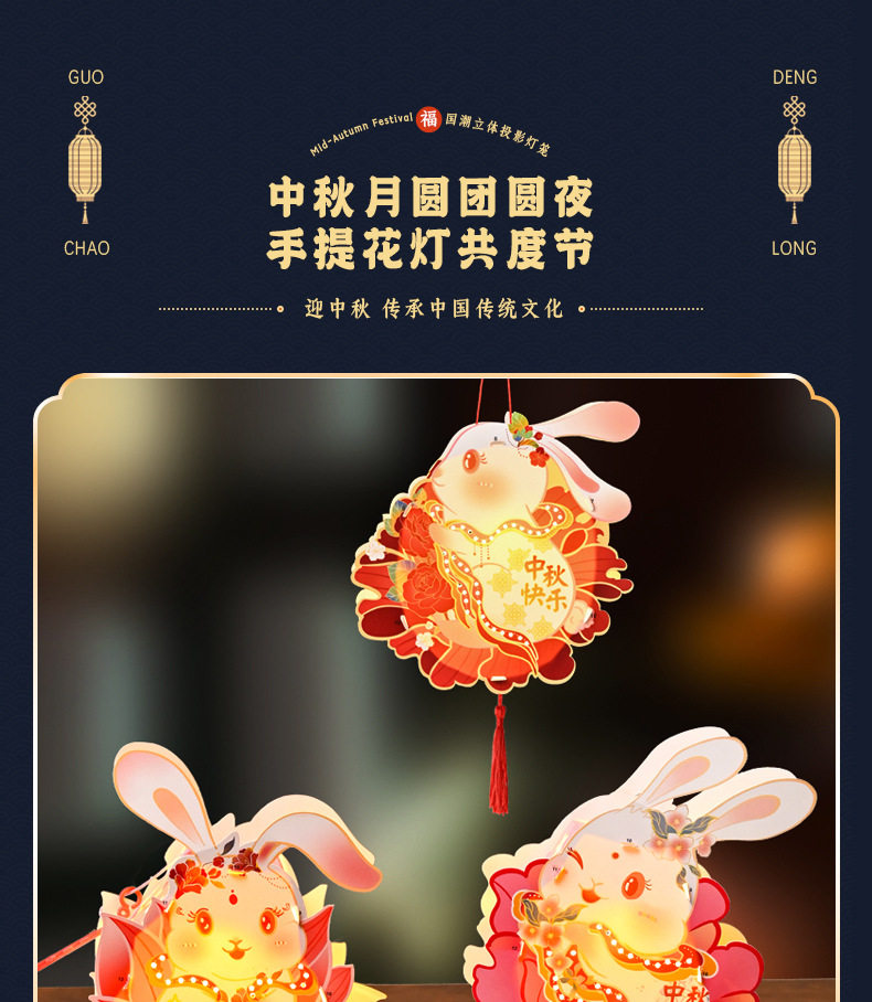 Color Happy mid-autumn festival [rabbit lantern],Lotus-scented rabbit [cardboard portable lantern],Peony rabbit [cardboard portable lantern],Mid-autumn reunion [rabbit lantern],Welcome the mid-autumn festival [rabbit lantern]