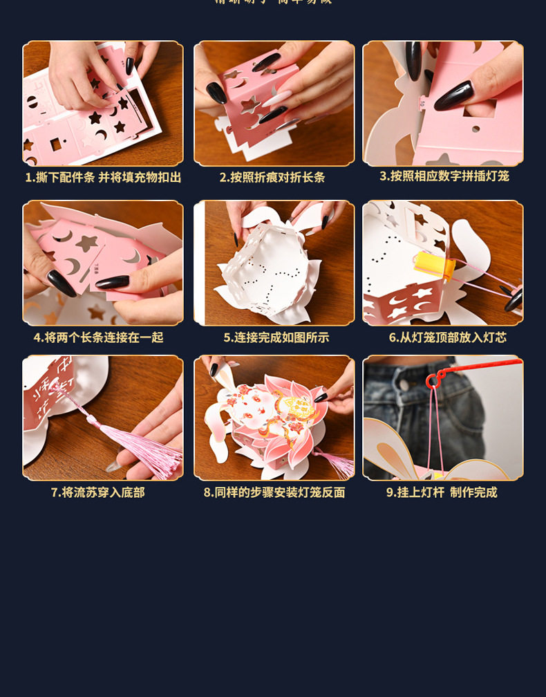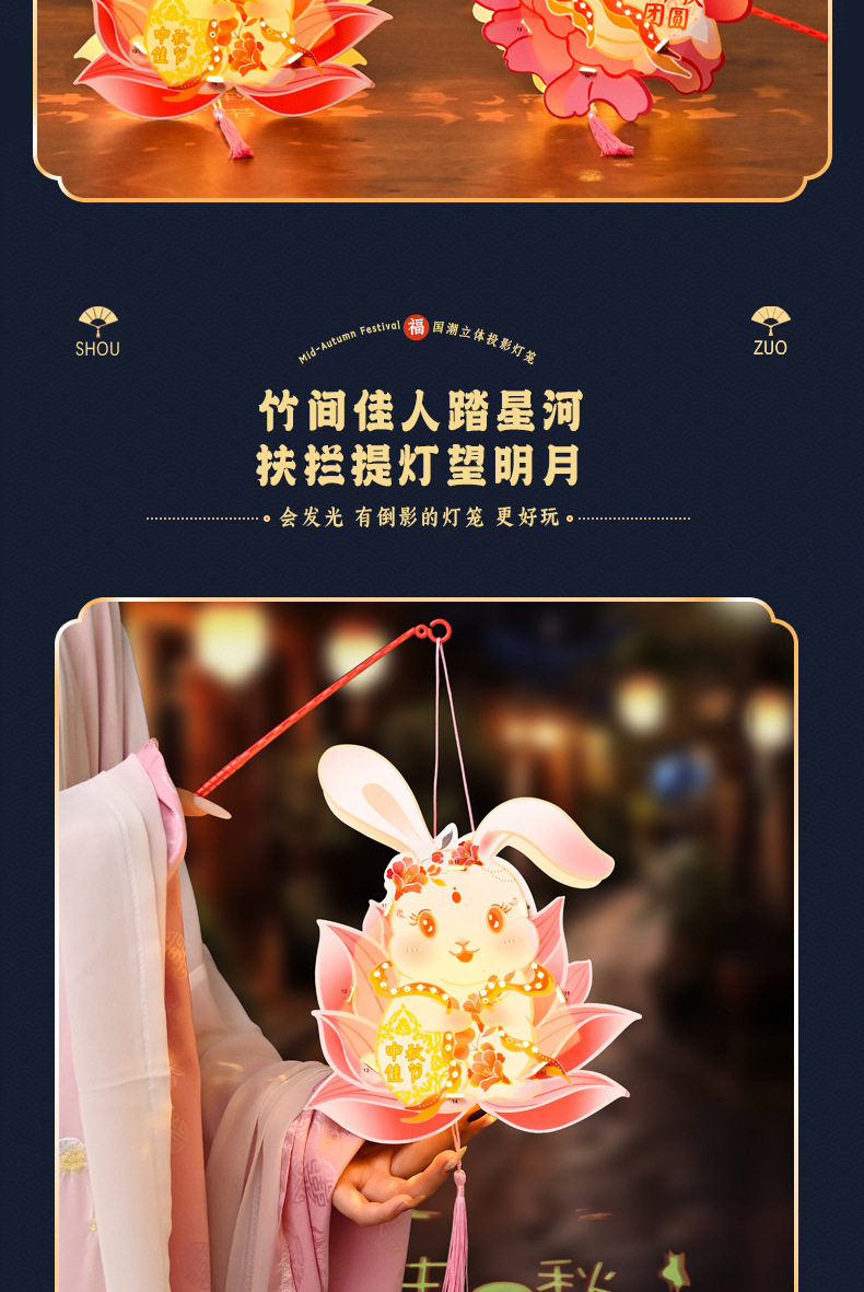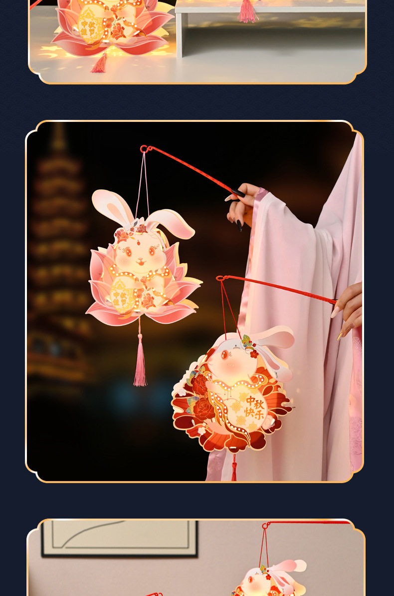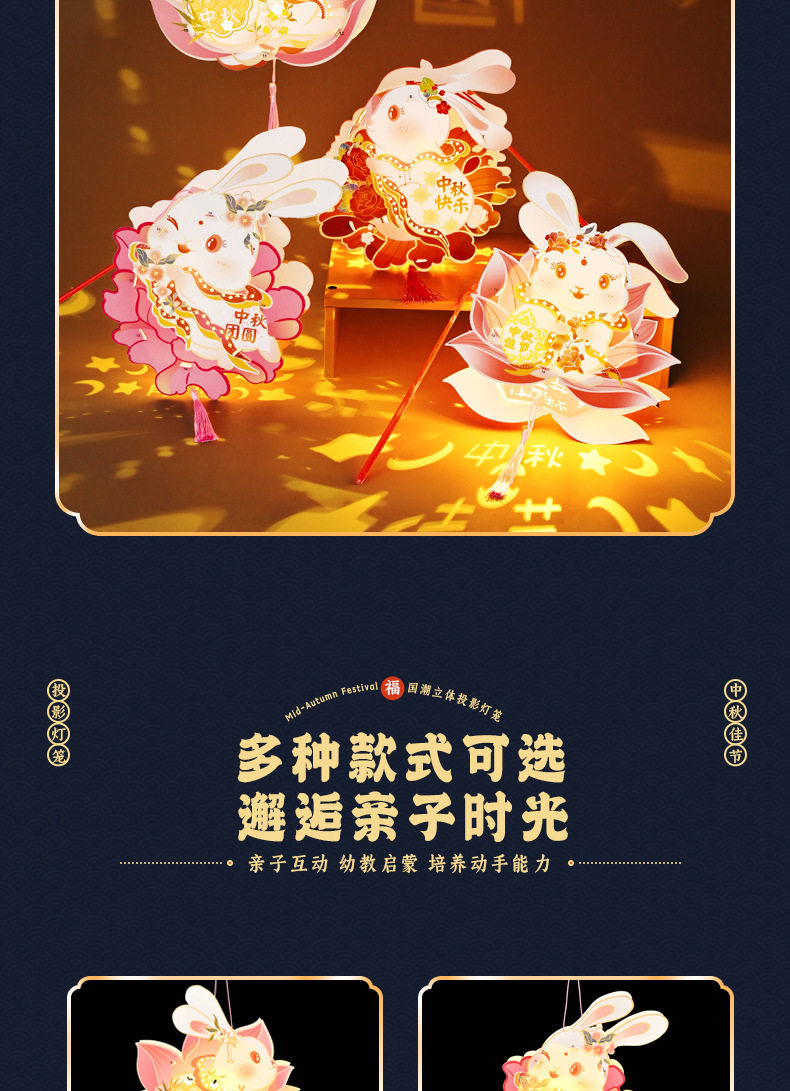 Color Happy mid-autumn festival [rabbit lantern],Lotus-scented rabbit [cardboard portable lantern],Peony rabbit [cardboard portable lantern],Mid-autumn reunion [rabbit lantern],Welcome the mid-autumn festival [rabbit lantern]