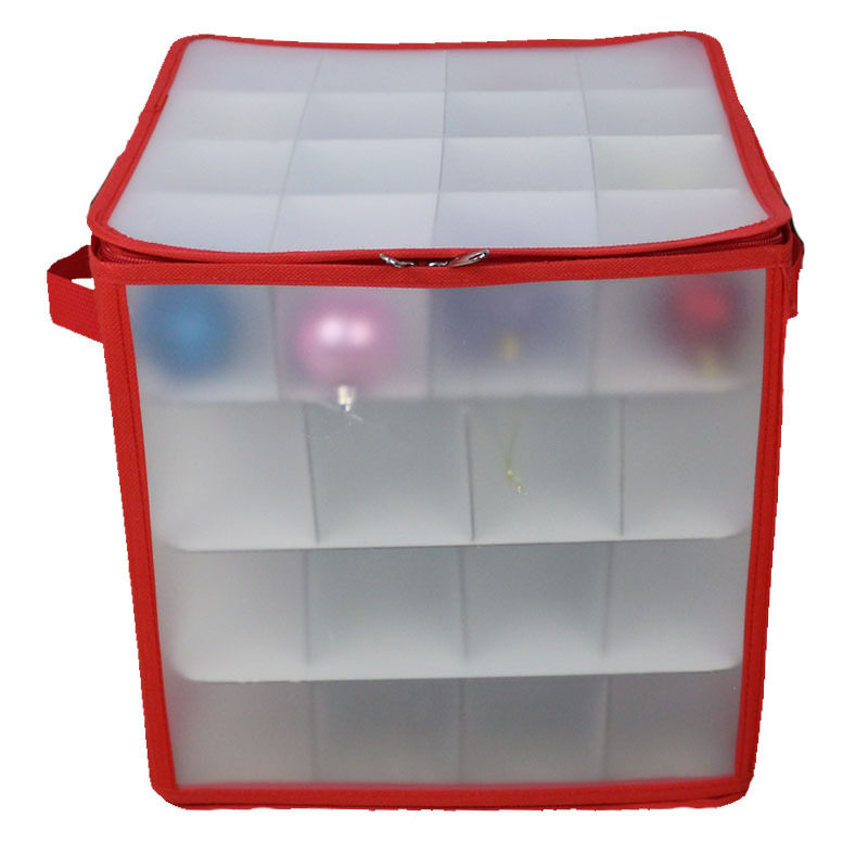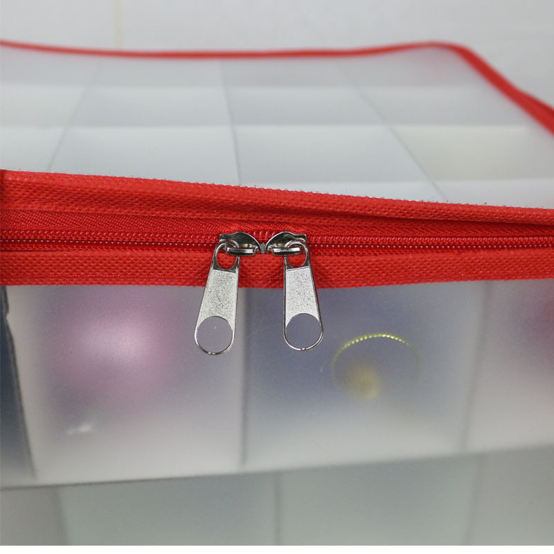 Pp Plastic Frosted Christmas Ball Storage Box Red Double Zipper Wardrobe Desktop Storage Box 64 Grids Storage Box with Lid