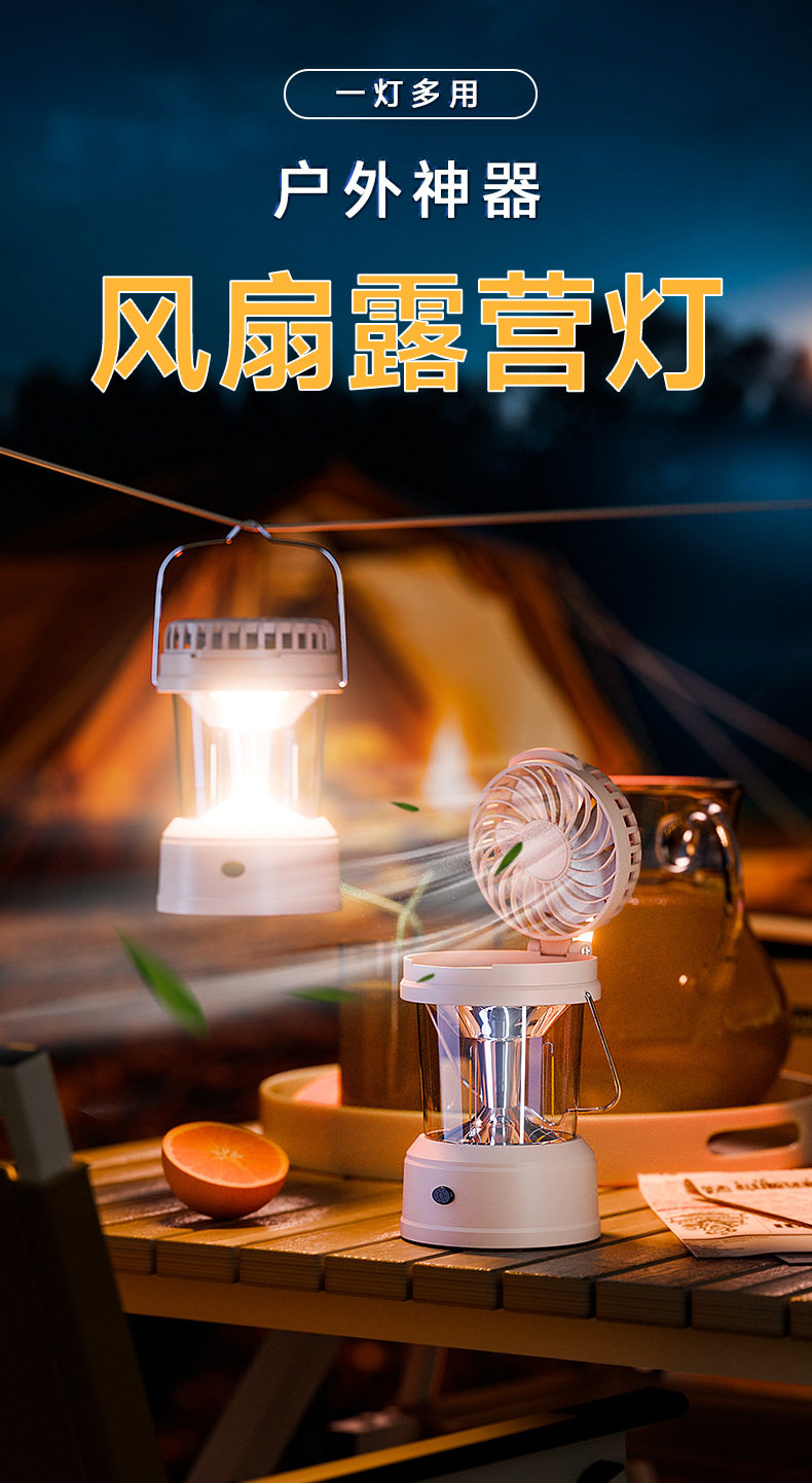 Camping lamp fan lamp multifunctional dual-purpose outdoor lantern tent lamp camping lamp atmosphere folding strong light portable lamp