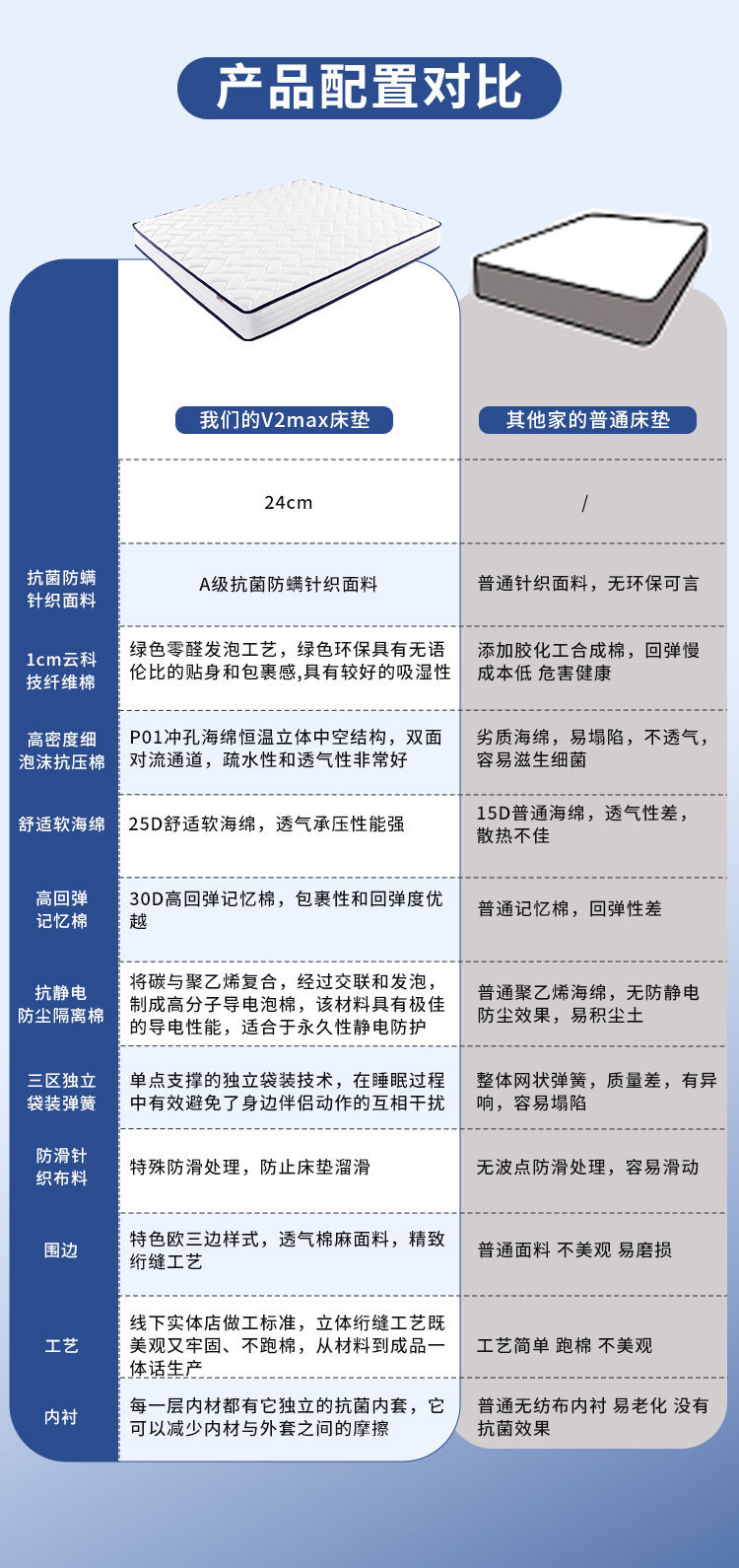 | Color | V2-MAX (partition independent pocket spring cloud technology fiber cotton high density fine foam compression cotton zero pressure intelligent memory cotton features European three sides) |