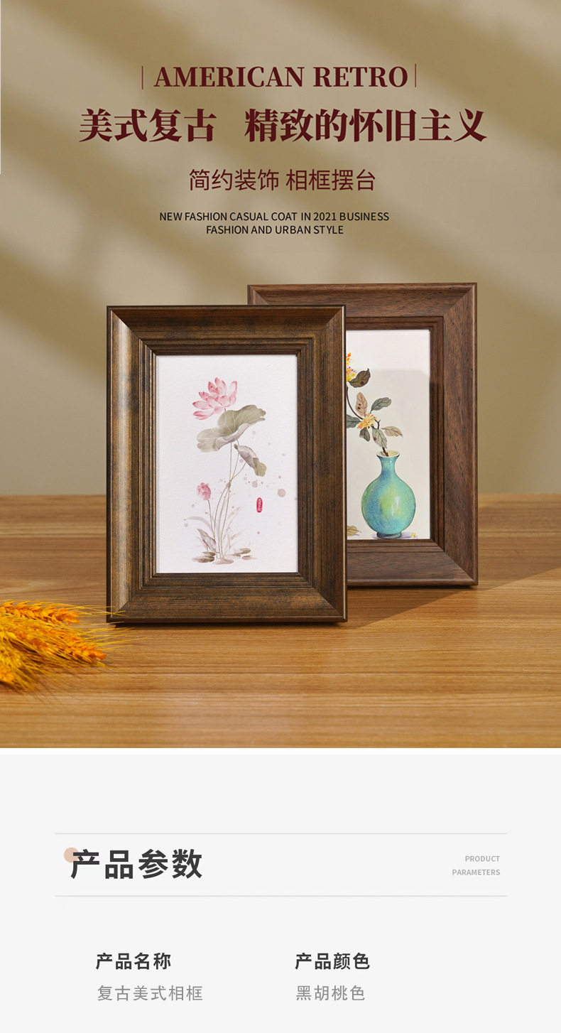 American Retro Photo Frame Black Walnut Color 6 "7" 8 "A4 Photo Frame Set Table Picture Frame Oil Painting High Sense Mounted Frame