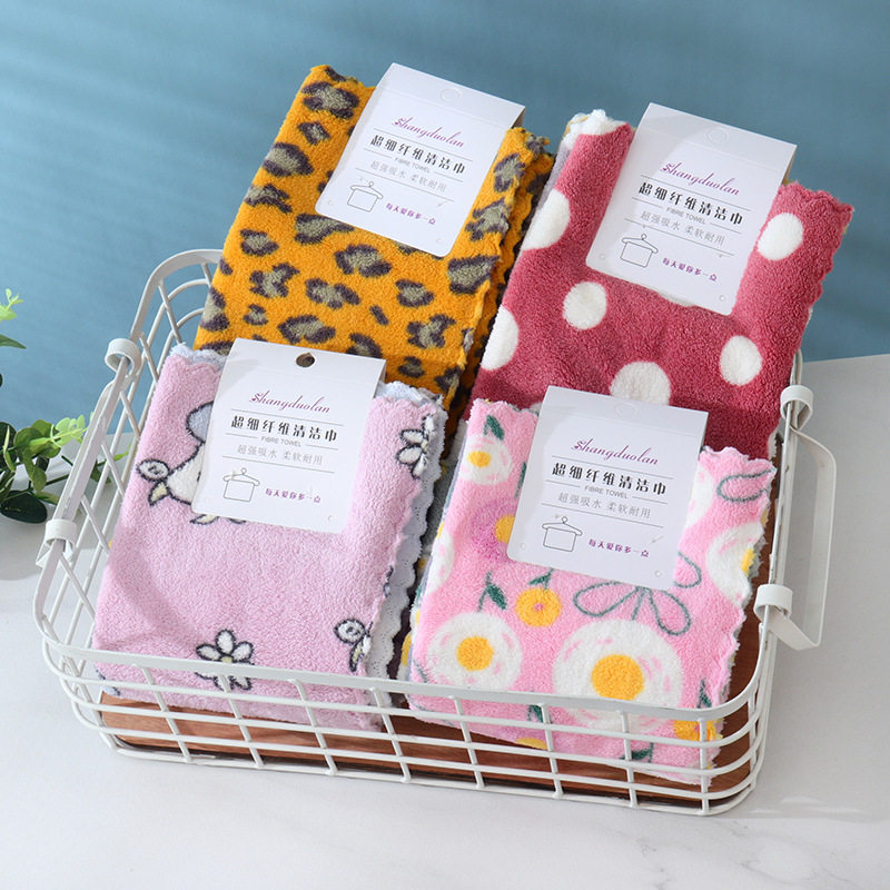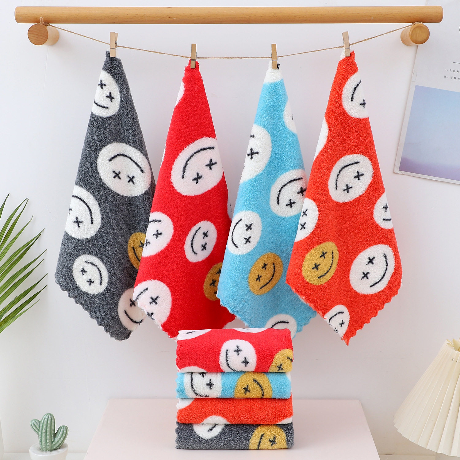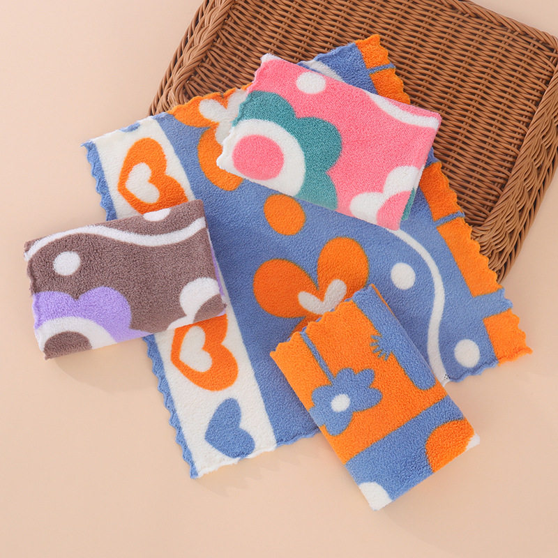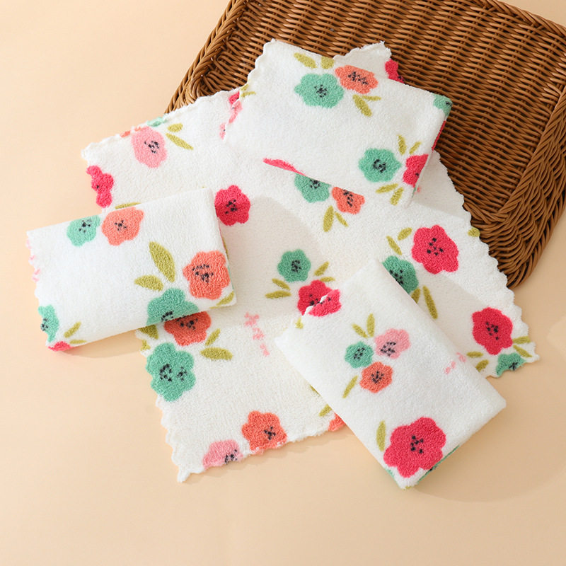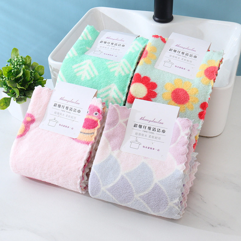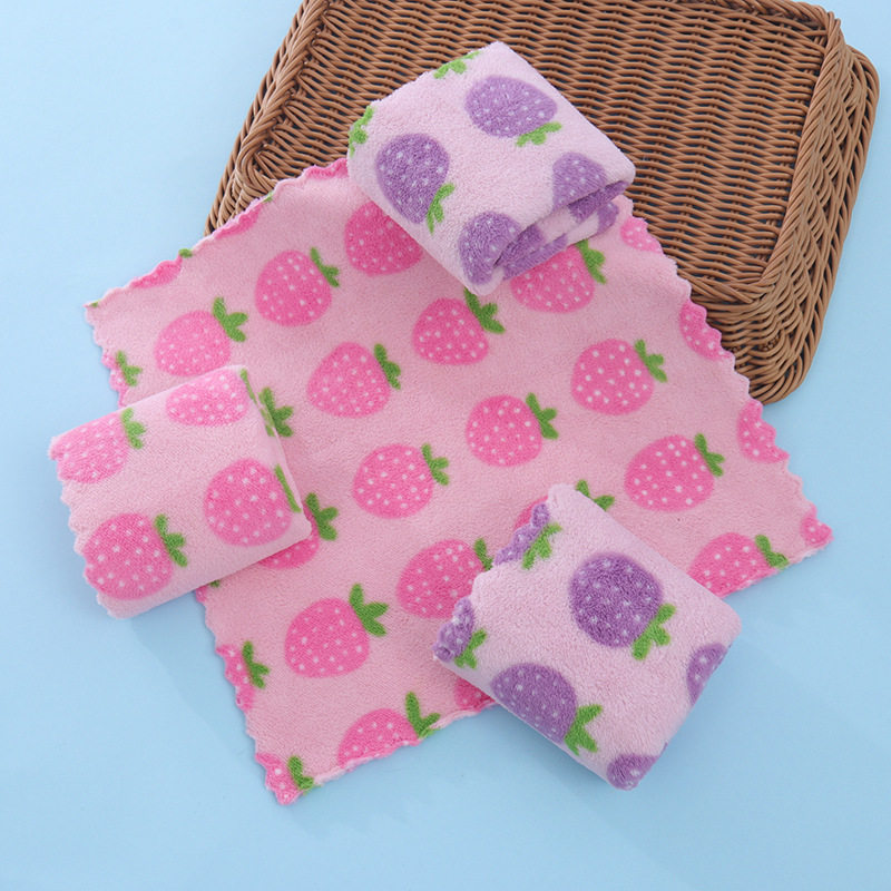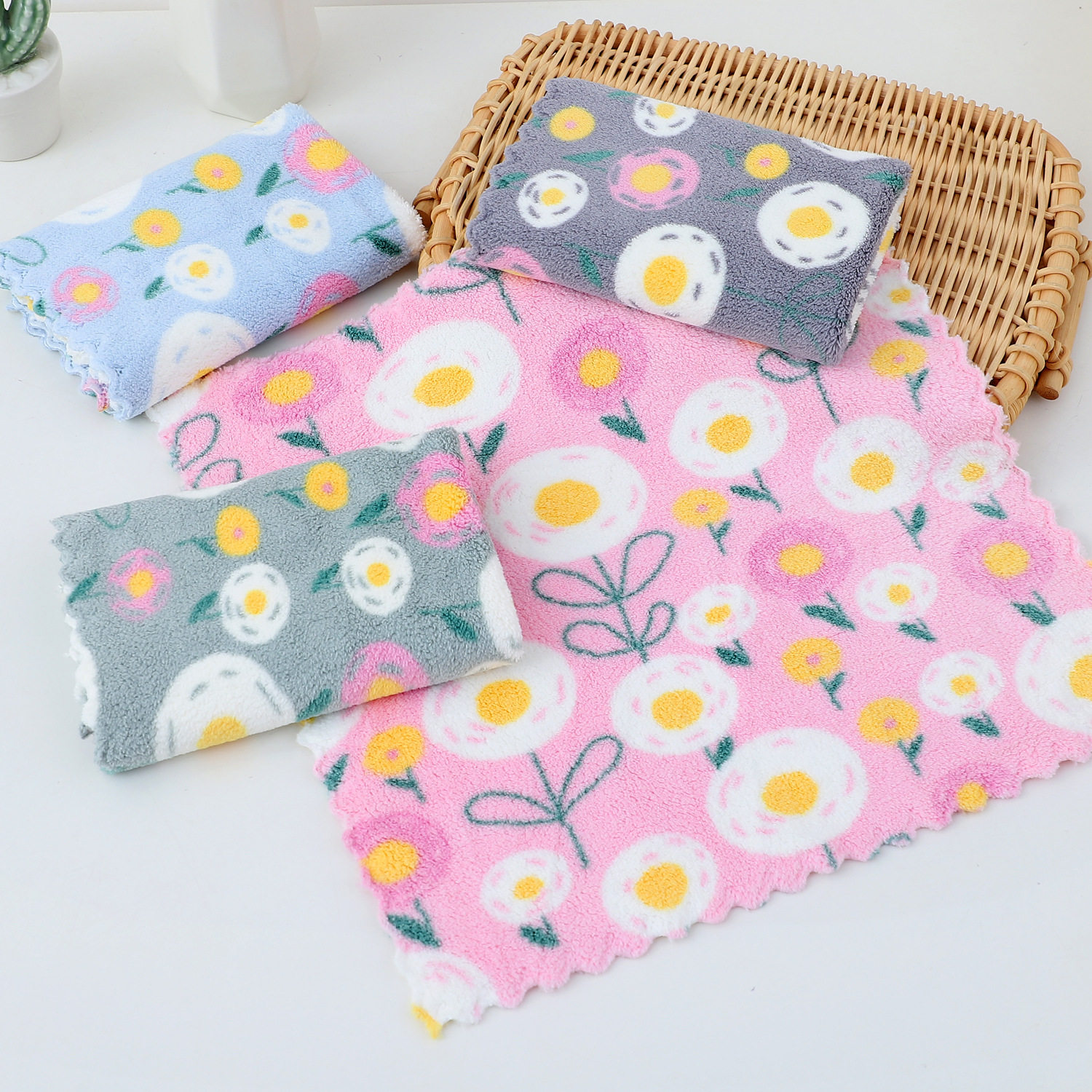 New Coral Fleece Printed Kitchen Cloth Wipe Hand Towel Thickened Absorbent Dishwashing Cloth Cute Household Small Towel for Hair