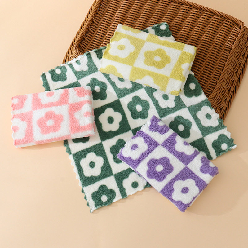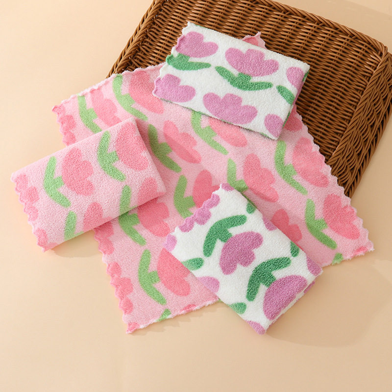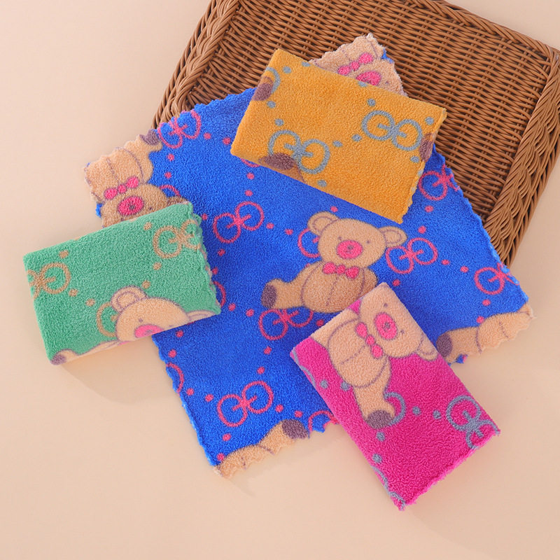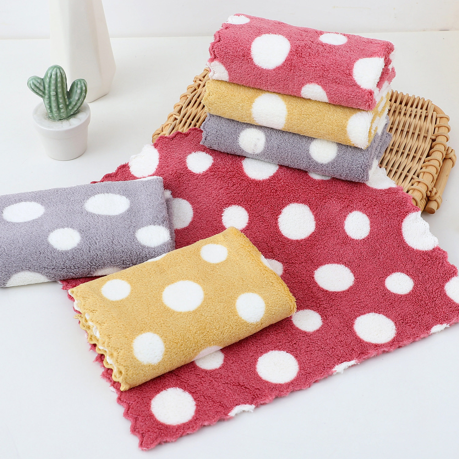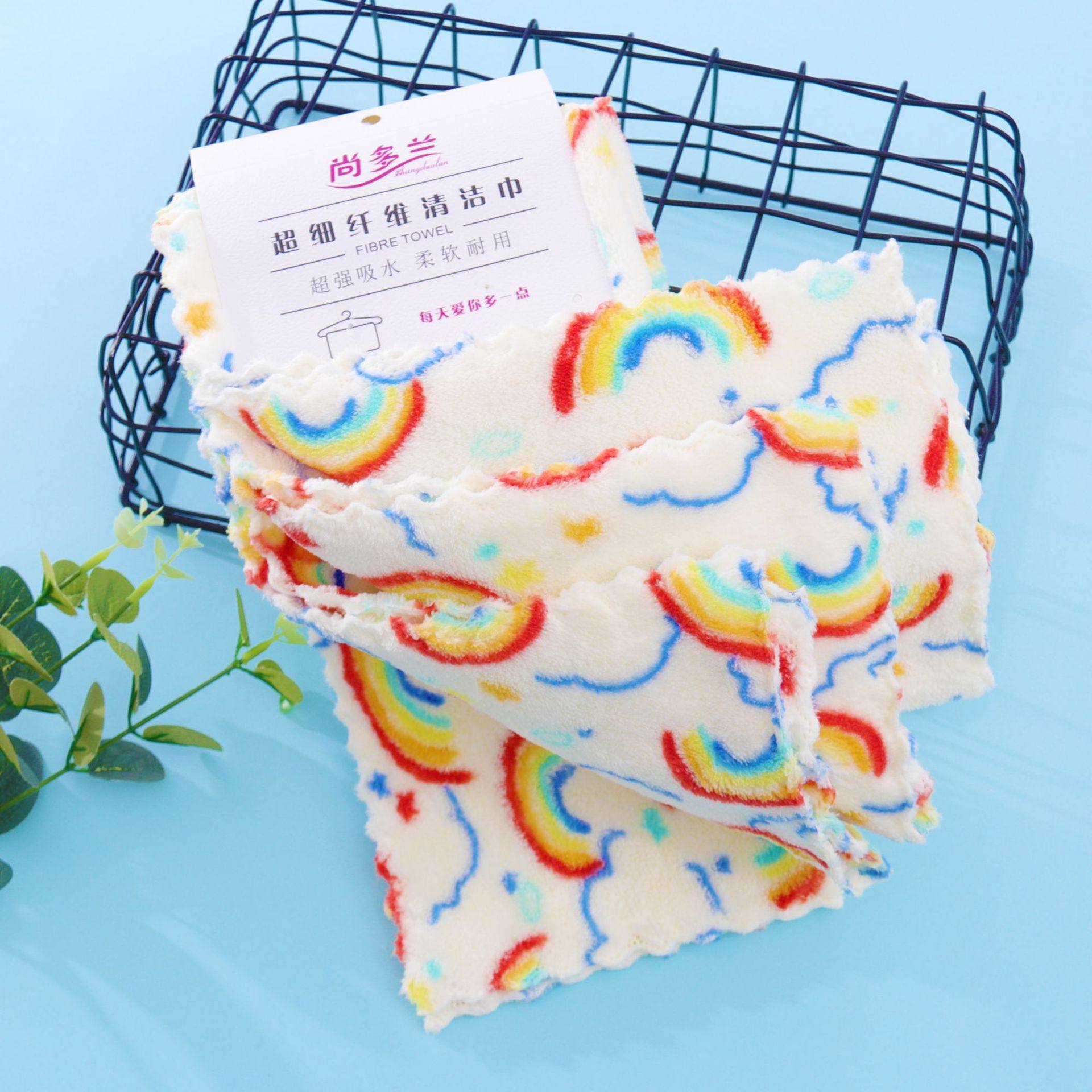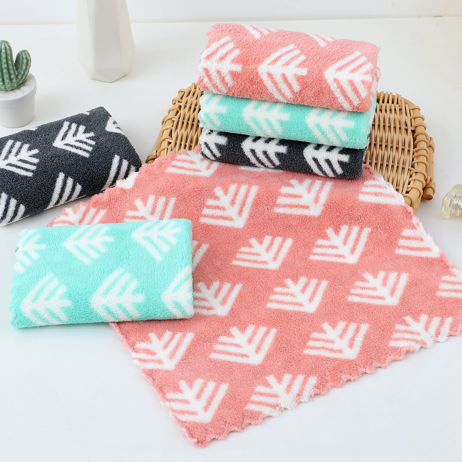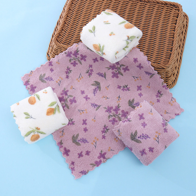 New Coral Fleece Printed Kitchen Cloth Wipe Hand Towel Thickened Absorbent Dishwashing Cloth Cute Household Small Towel for Hair
