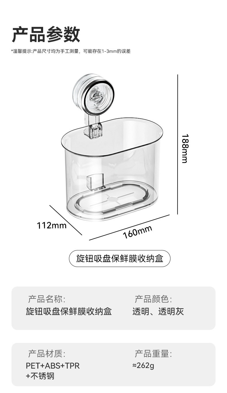 | Color | Suction cup cling film storage box (transparent),Suction cup cling film storage box (transparent gray) |