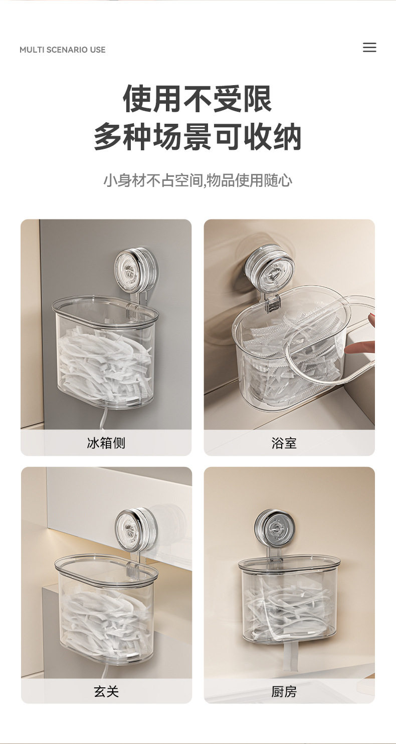 Suction Cup Cling Film Storage Box, No-Drill Household Kitchen Wall-Mounted Disposable Cling Film Bag Storage Transparent Storage Box