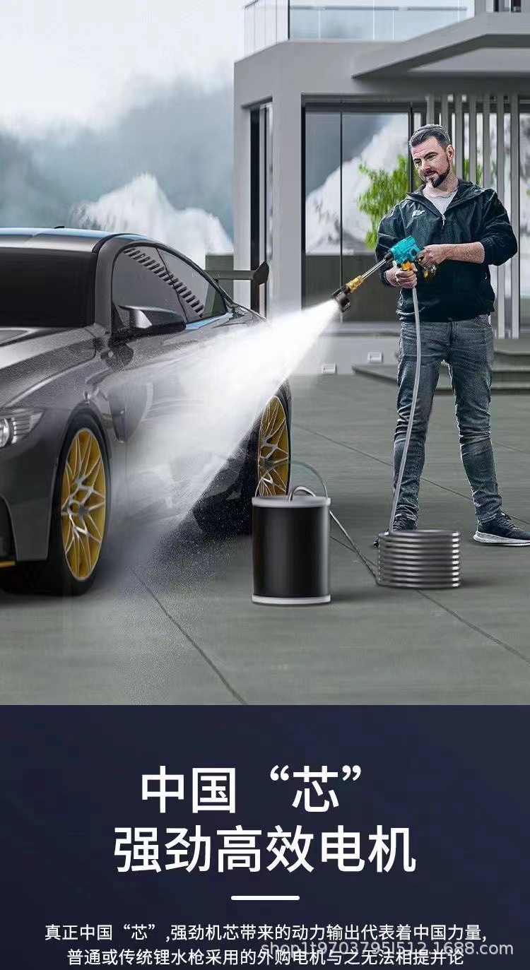 Wireless car washing machine high-pressure car washing water gun household portable rechargeable high-power lithium battery water pump cleaning god