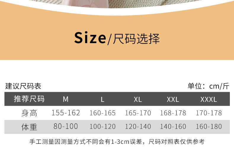 | Size | M code (suitable for 80kg -100kg),L code (suitable for 100kg -120kg),XL code (suitable for 120kg -140kg),2XL code (suitable for 140kg -160kg),3XL code (suitable for 160kg -180kg) |