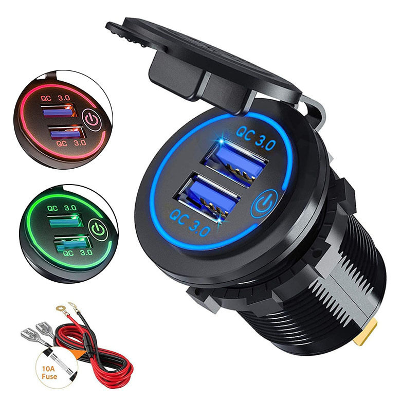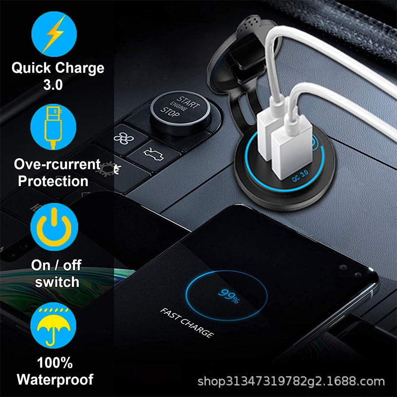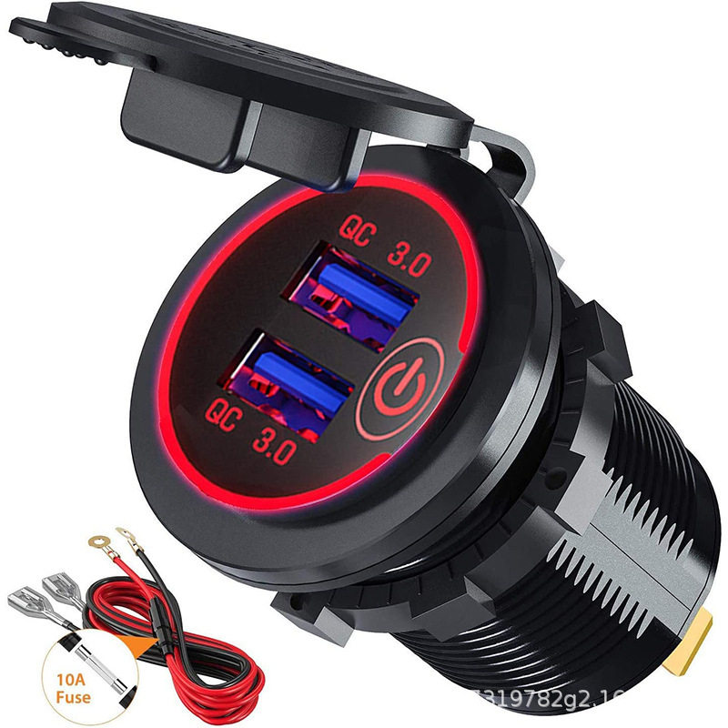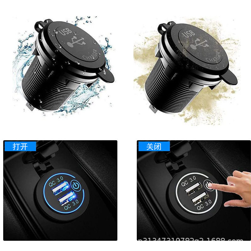 Cross-border new touch switch car motorcycle boat USB car charger dual QC3.0 fast charging modified car
