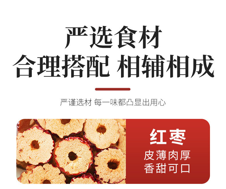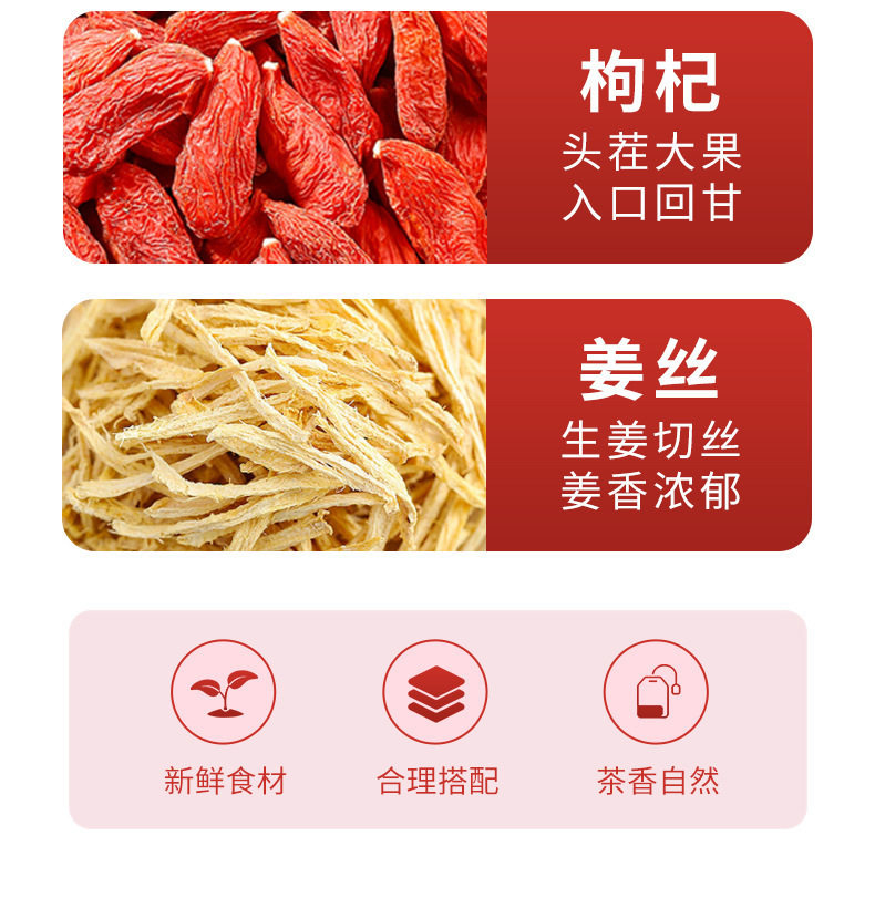 | Raw materials and ingredients | Red dates, wolfberry, dried ginger shreds |