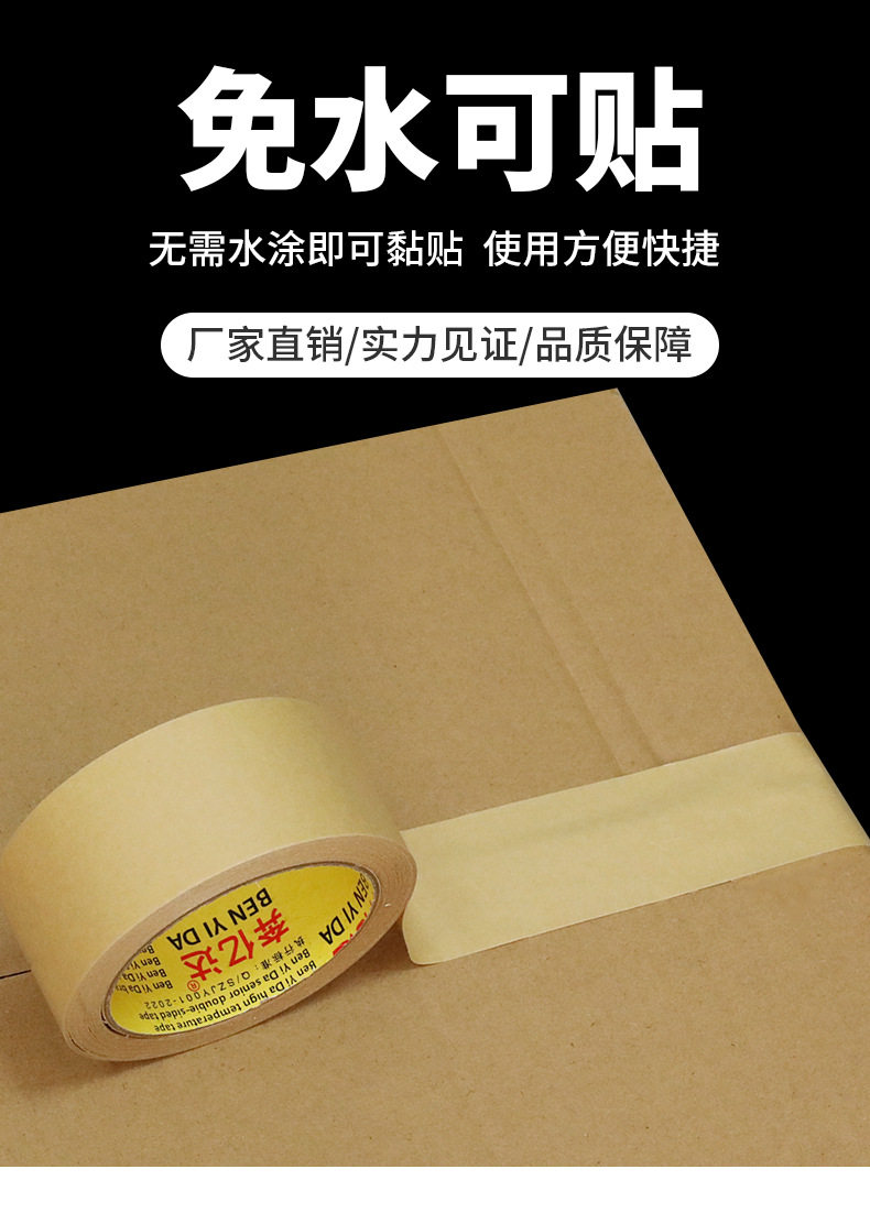 Kraft paper tape water-free self-adhesive strong high viscosity environment-friendly degradable yellow packing paper tape 50 meters
