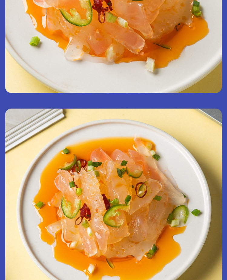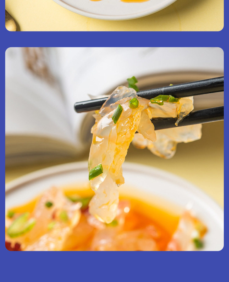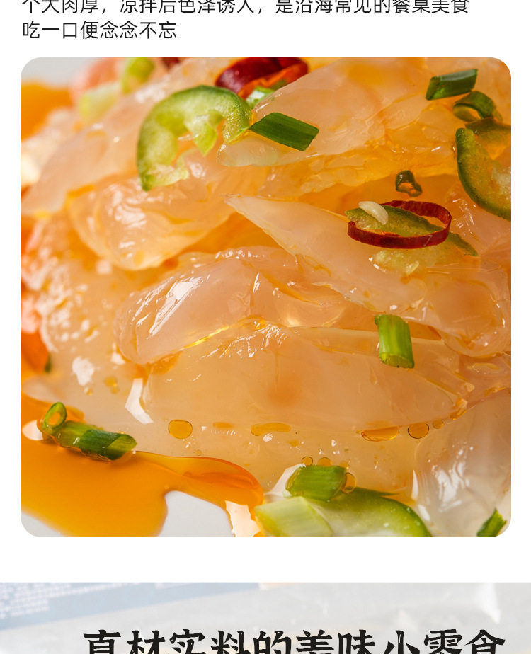 | Packaging specifications | Jellyfish head/bag/200g (without ingredients bag),Jellyfish head 250g/pack (without ingredients),Jellyfish head 420g/pack (without ingredients) |