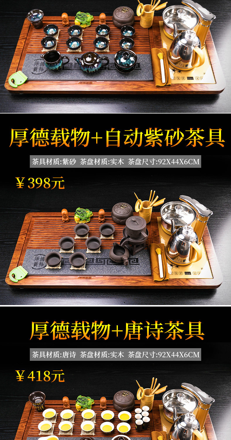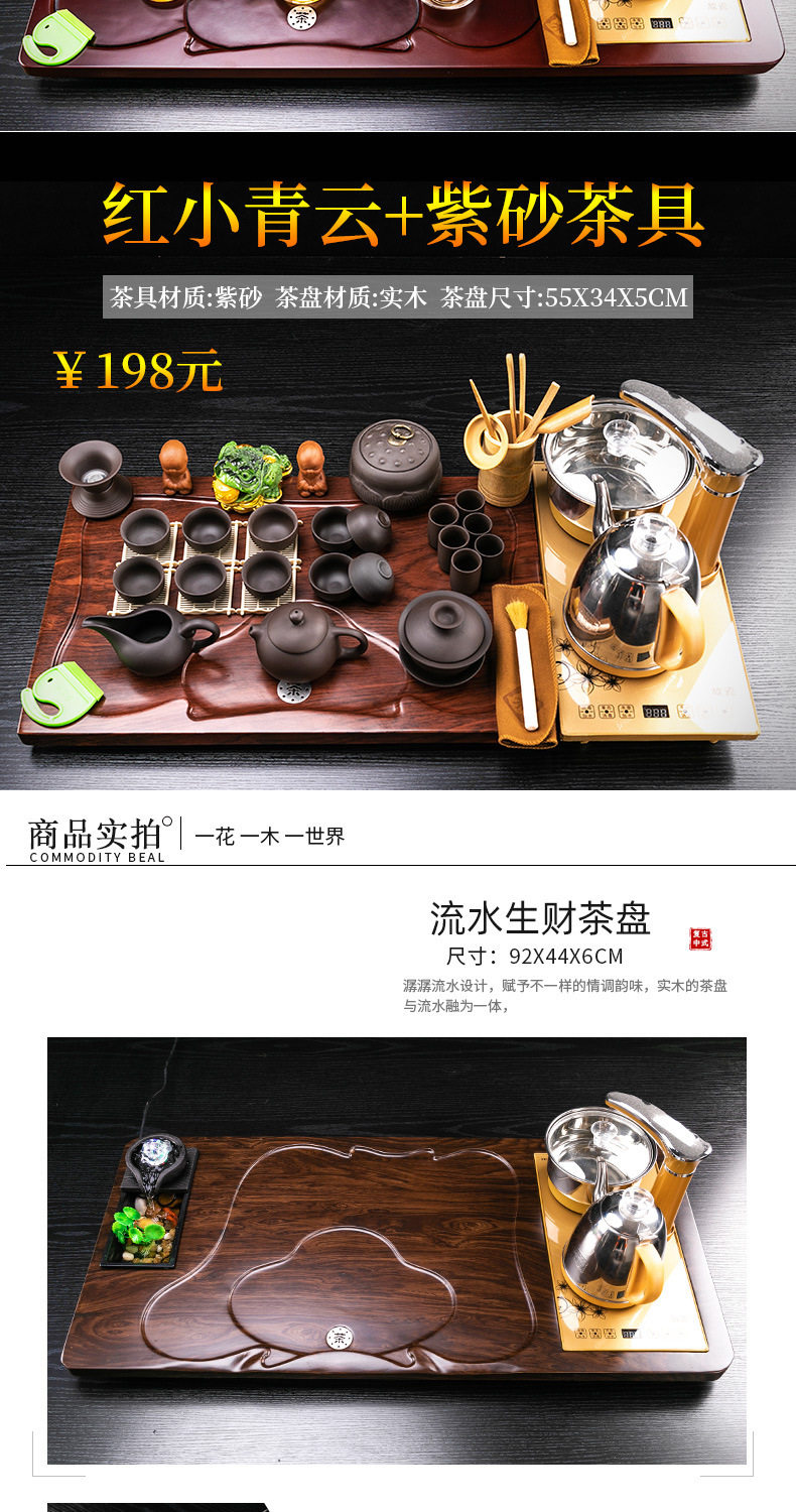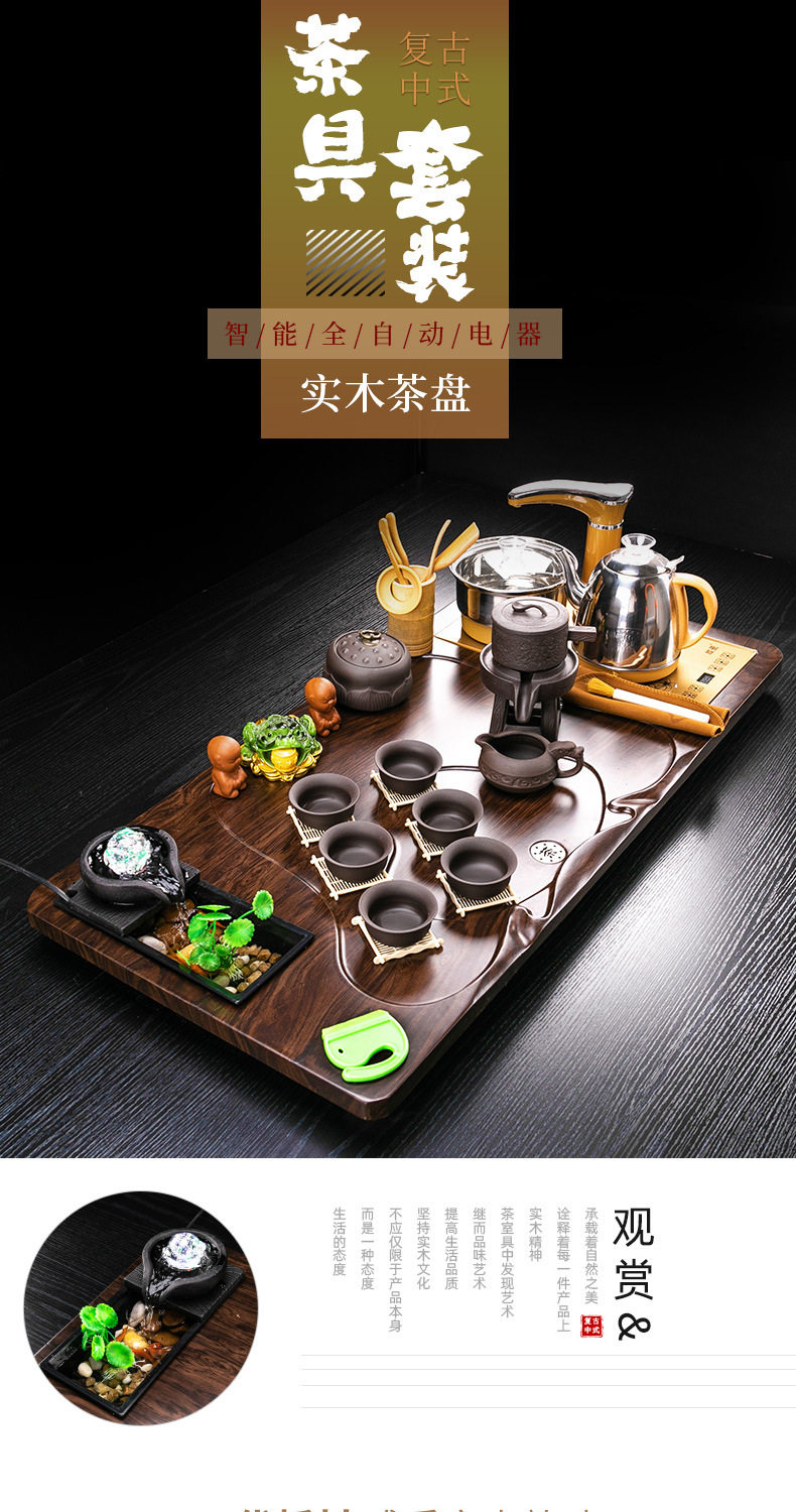 Complete Set of Purple Sand Kung Fu Tea Set suit Household Simple Integrated Solid Wood Tea Tray Tea Table Automatic Electric Tea Stove for Tea