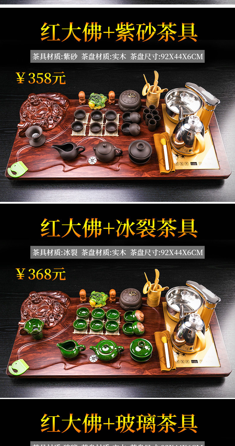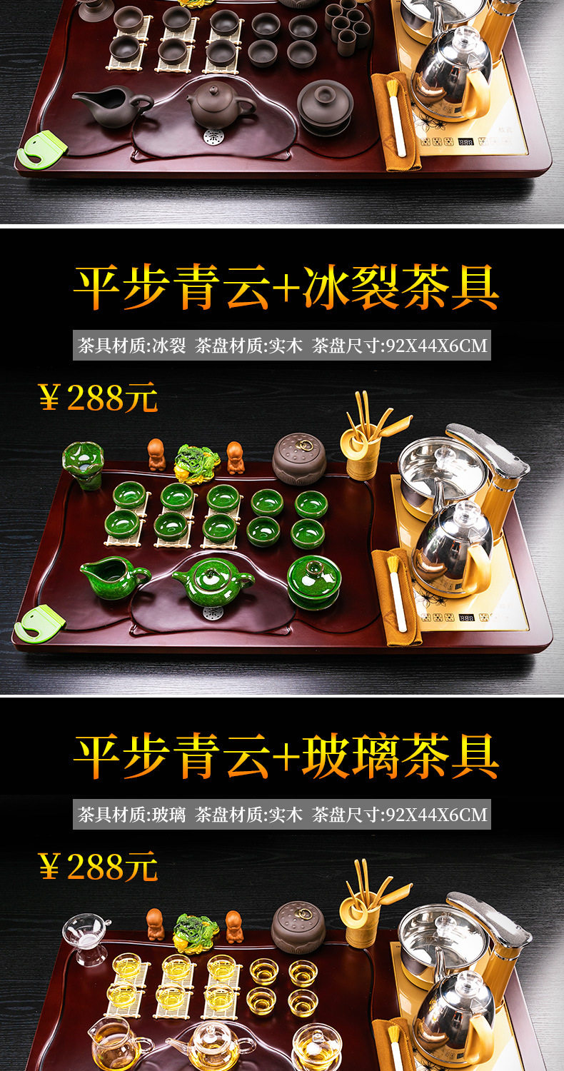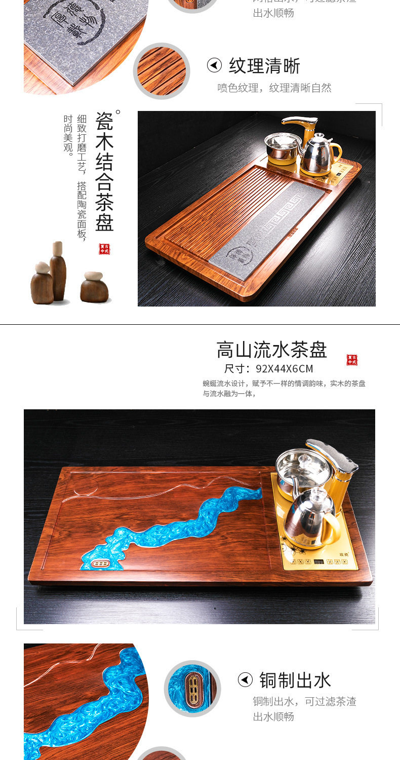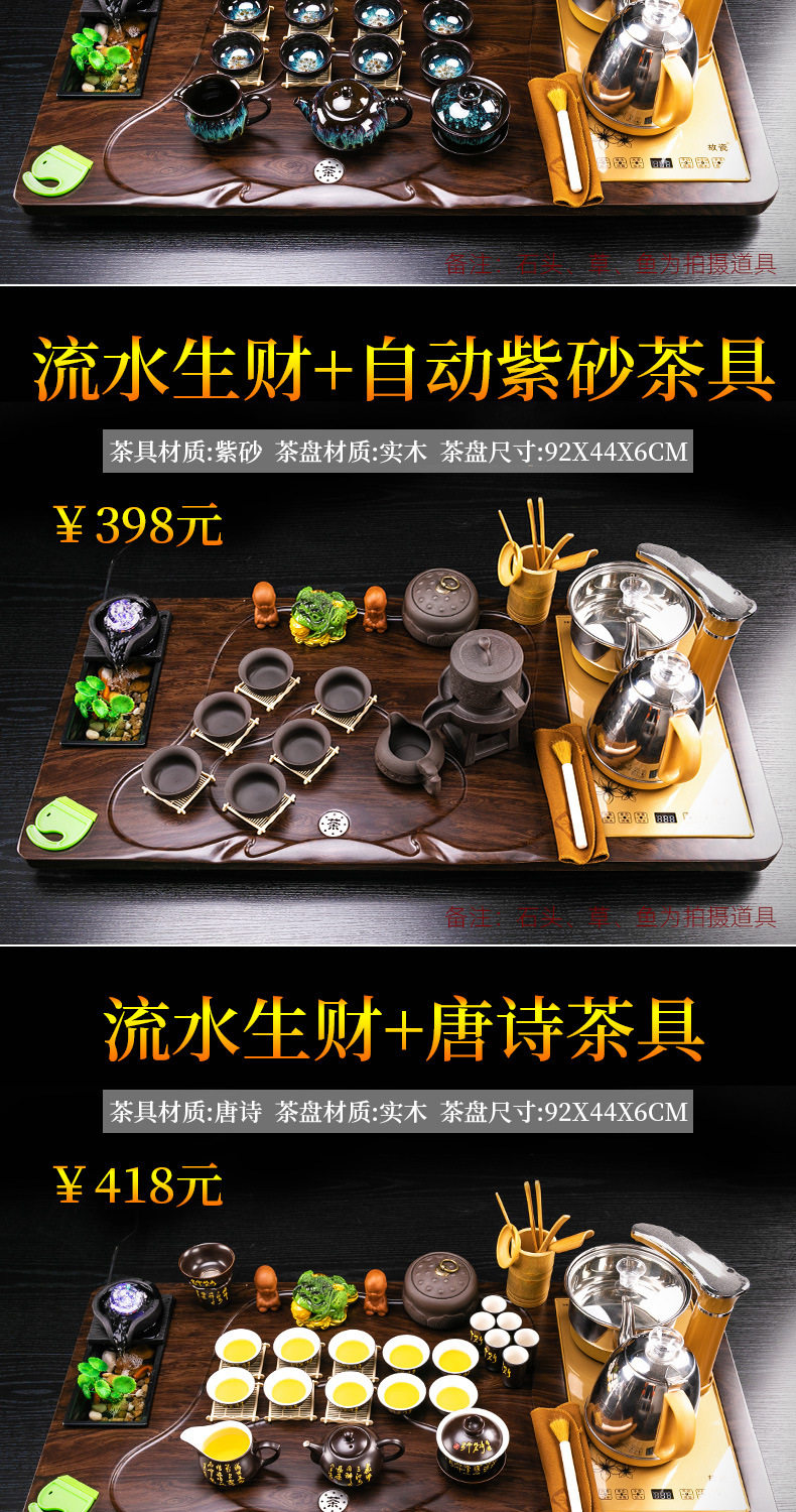 Complete Set of Purple Sand Kung Fu Tea Set suit Household Simple Integrated Solid Wood Tea Tray Tea Table Automatic Electric Tea Stove for Tea