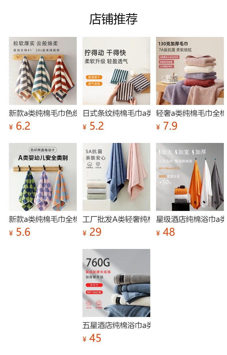 | Breakdown of towels and towels | Towel/Face towel |