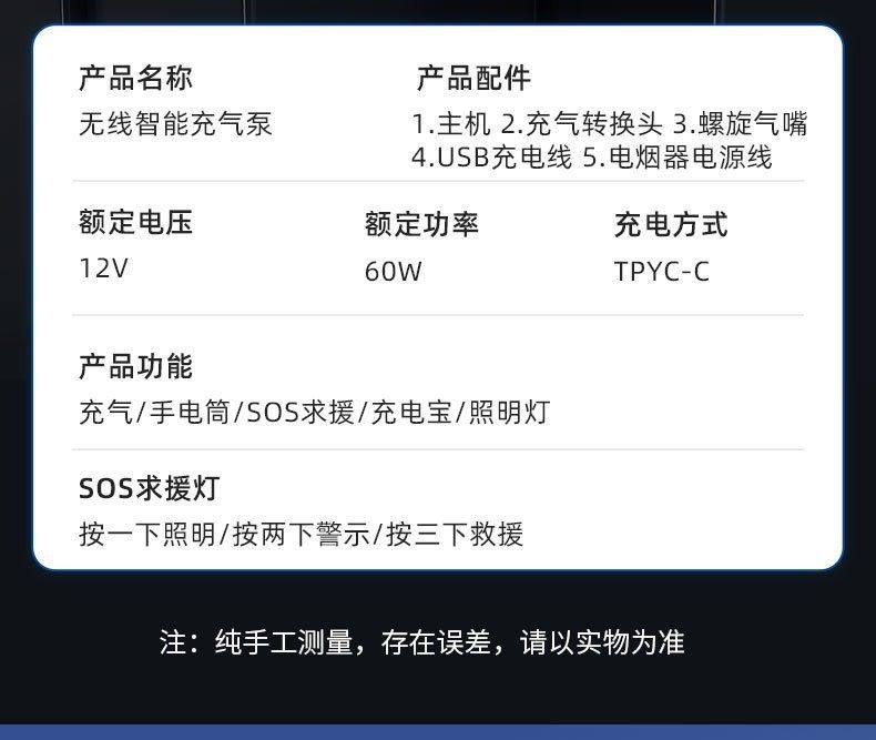 | Specifications | [12V] QCB-218 car model [cigarette lighter to take electricity] with lighting (with storage bag),[12V] 1300 capacity 3 section QCB-219 wireless charging with lighting (with storage bag),[12V] 1300 capacity 3 QCB-220 wireless three-use [wired wireless charging treasure] with lighting (with storage bag),[12V] QCB-0313 car model [cigarette lighter to take electricity] with lighting (with storage bag),[12V] 2000 capacity 3 section QCB-0314 wireless charging with lighting (with storage bag),[12V] 2000 capacity 3 QCB-0315 wireless three-use [wired wireless charging treasure] with lighting (with storage bag) |