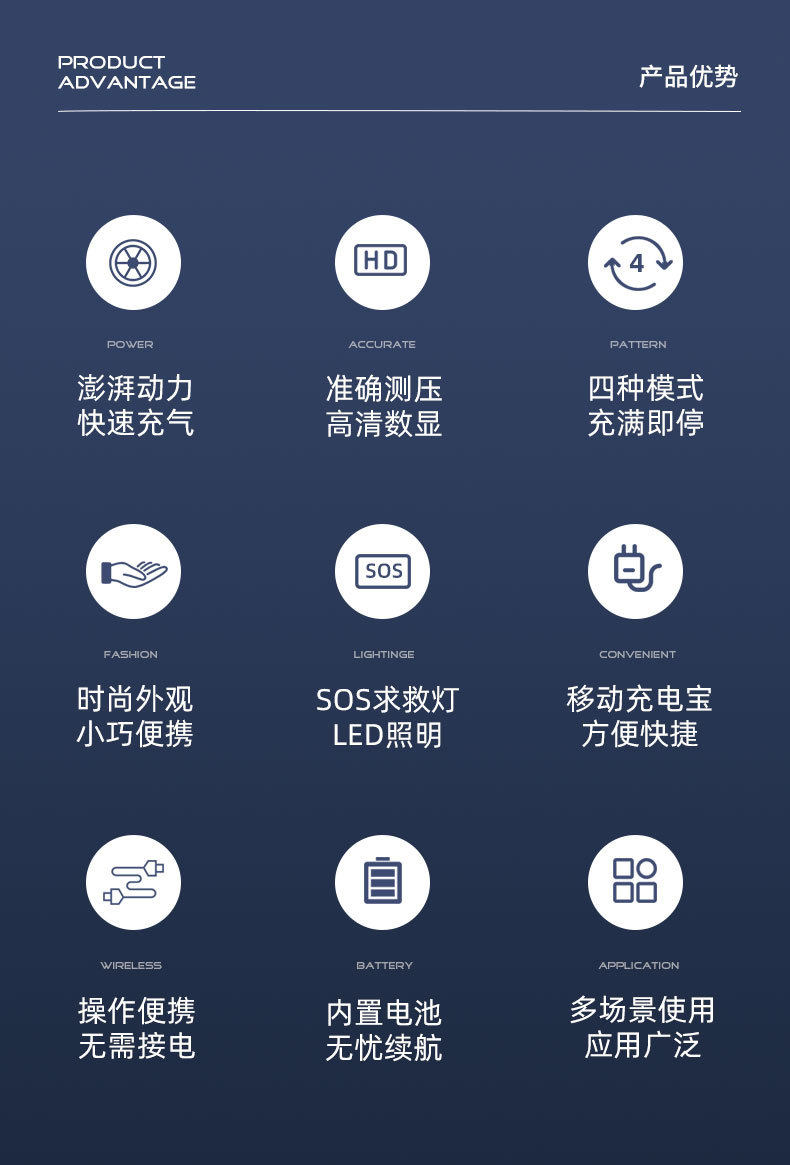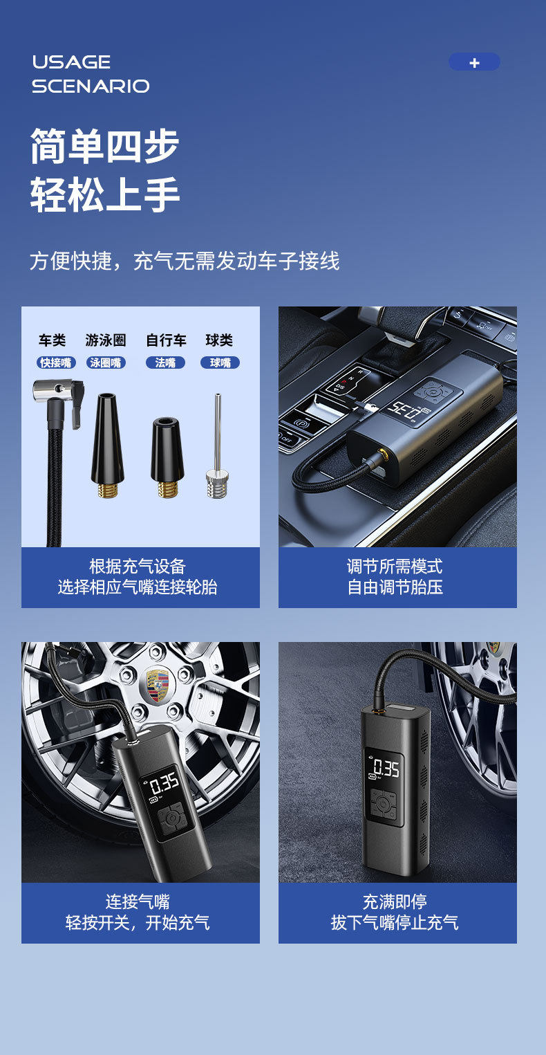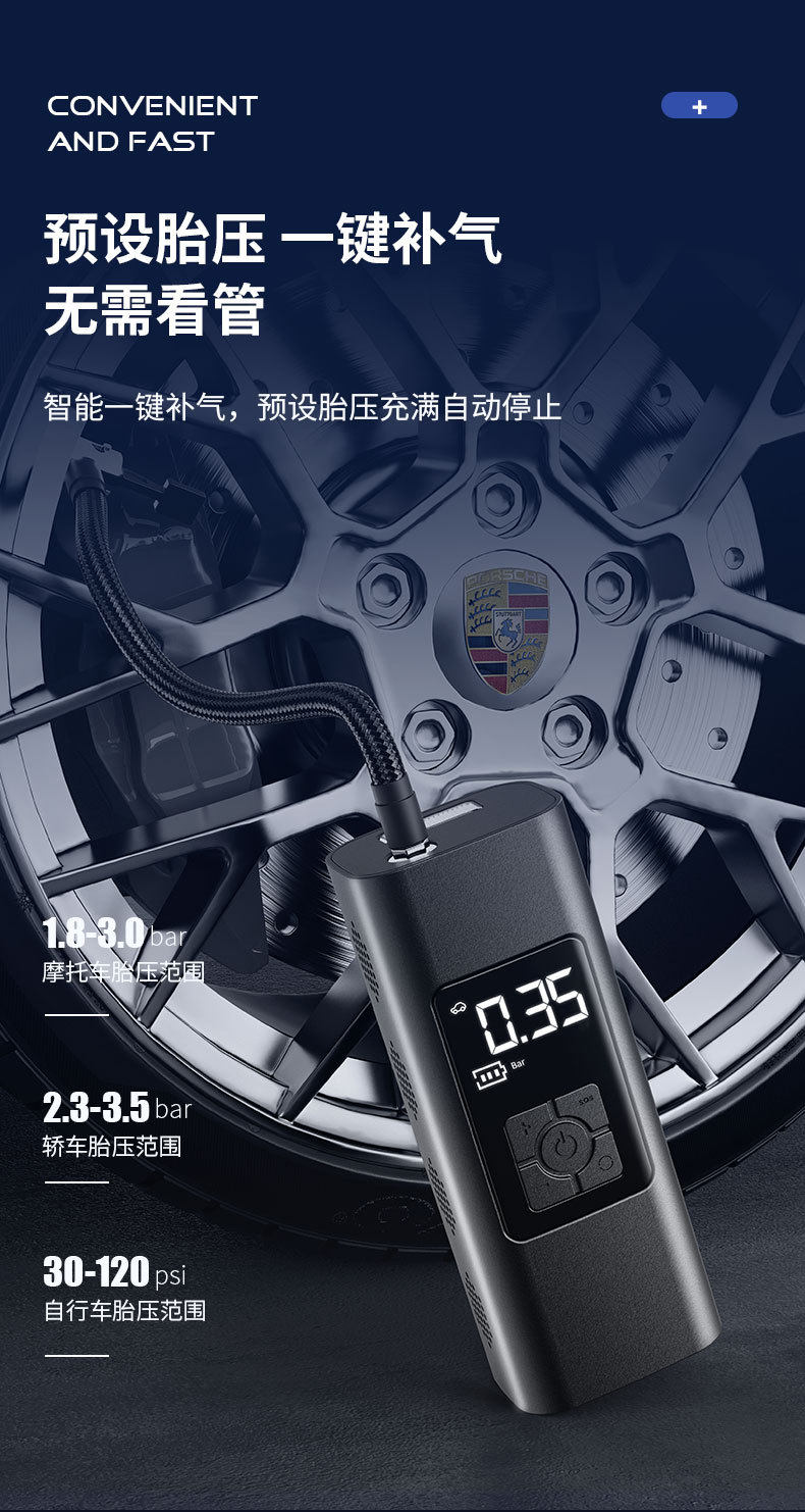 | Additional features | Lighting,Tire pressure gauge,Warning light,USB charging |