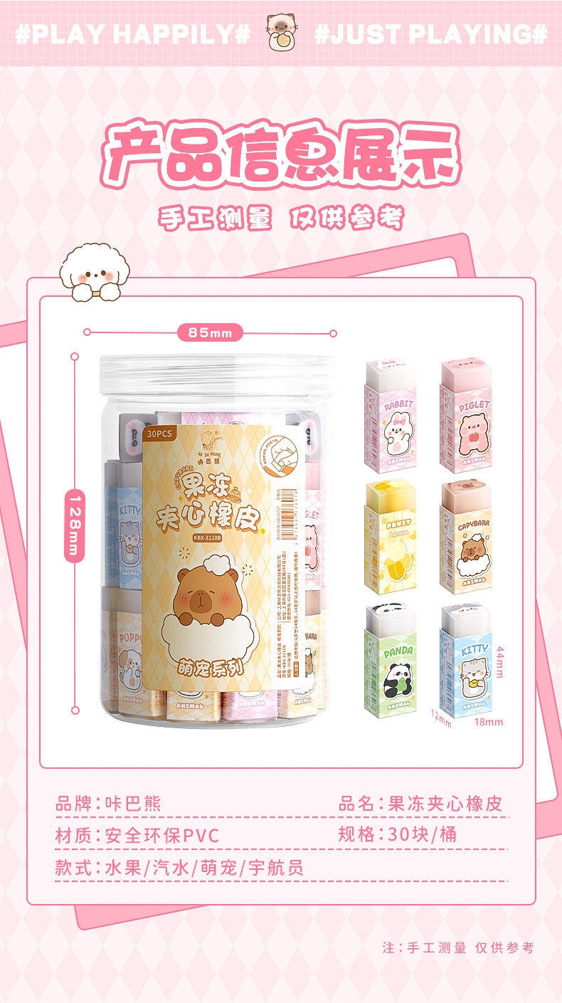Cartoon Creative Sandwich Rubber PVC Barrel Rubber for Primary School Students to Practice Characters Super Clean No Marks Eraser