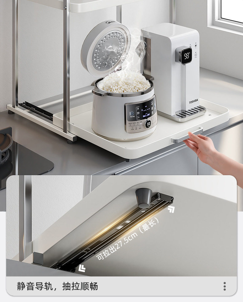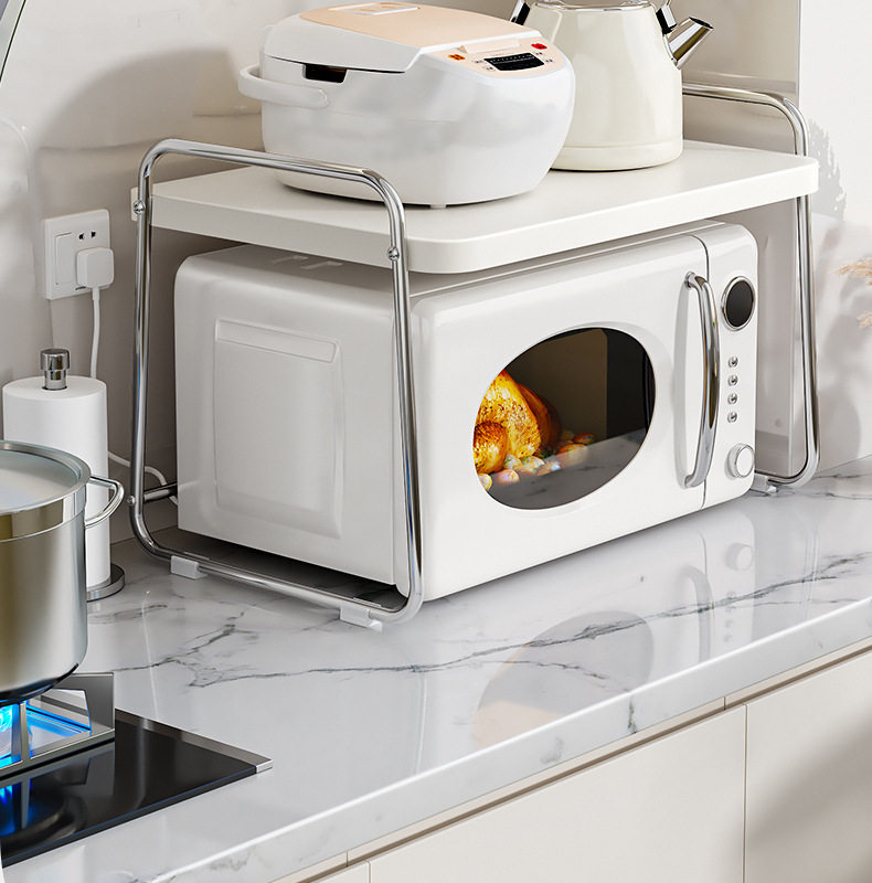 Double-layer Kitchen Microwave Oven Storage Rack Kitchen Countertop Multi-functional Pull-out Rice Cooker Oven Storage Rack