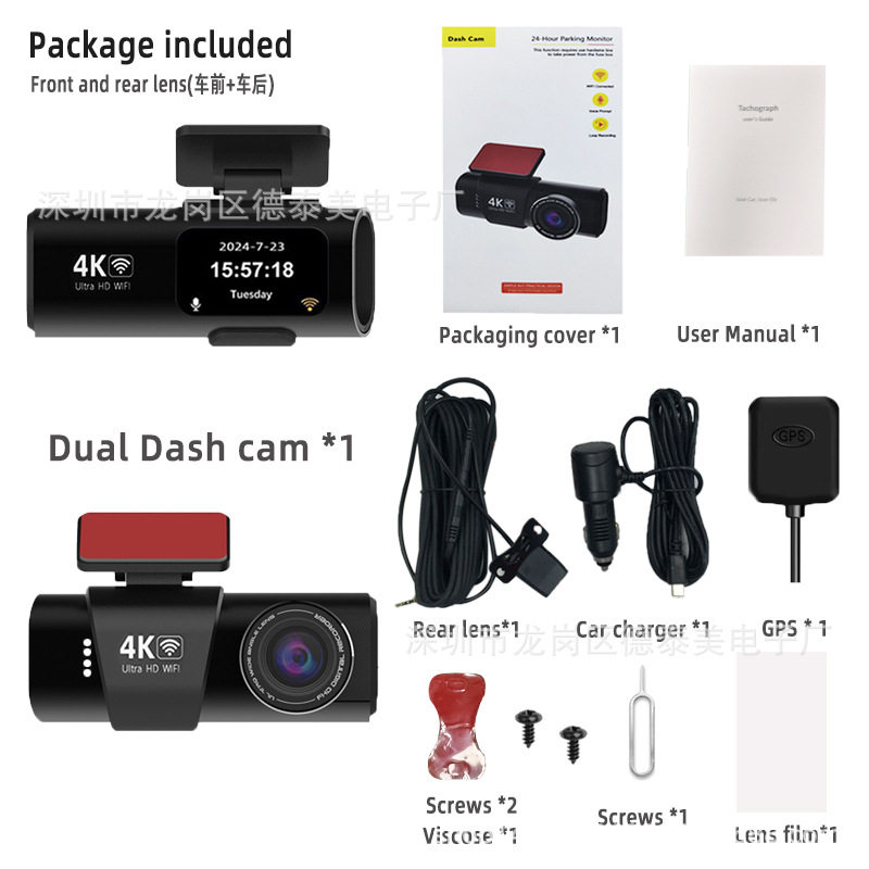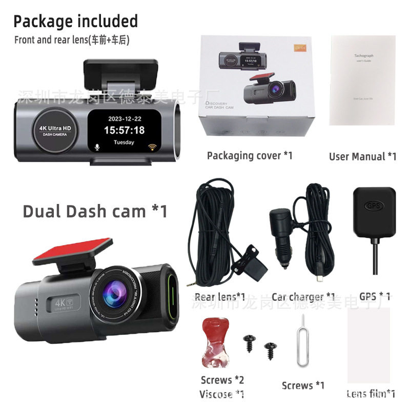 K309 Cross-Border Driving Recorder 4K High-Definition Dual-Lens Infrared Night Vision Wifi Interconnection Gps Car Camera