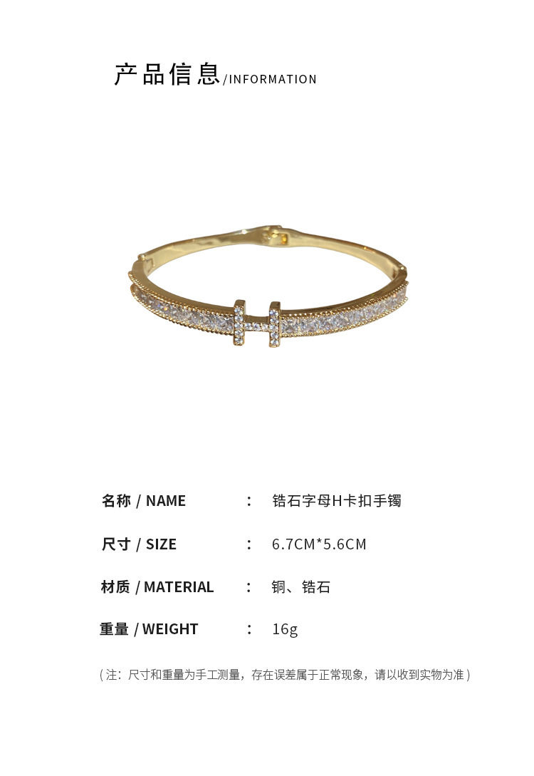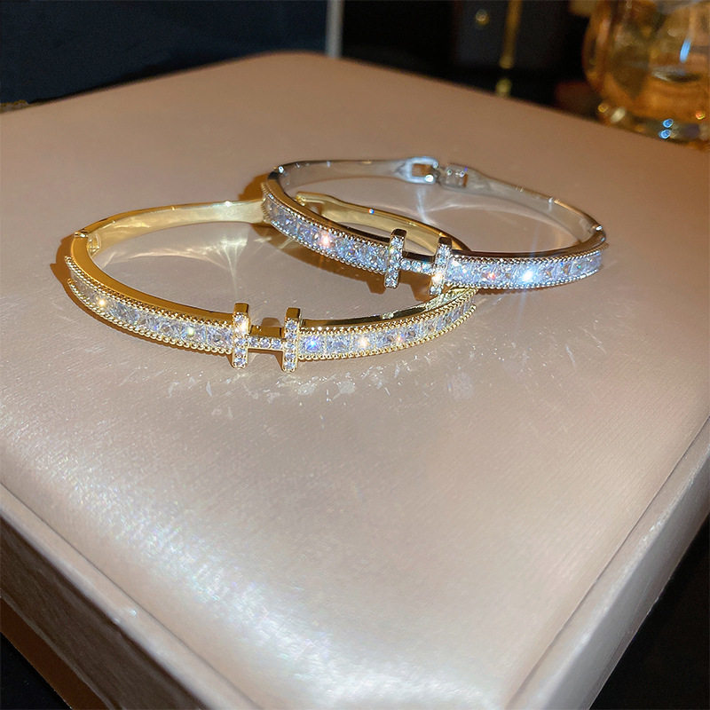 European and American Niche Super Flash Zircon Letter Buckle Bracelet High-grade Elegant Bracelet Light Luxury Simple Style All-match Bracelet