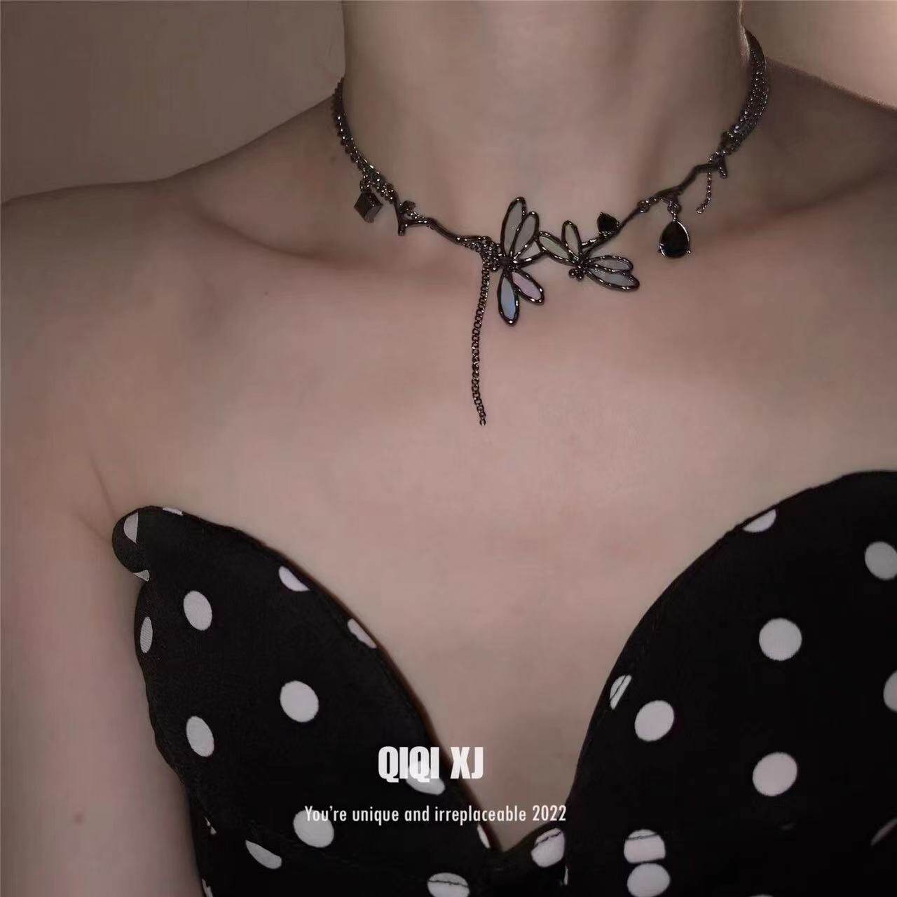 Gun black magic dragonfly choker niche high sense clavicle chain sweet cool dark wind neck chain accessories 2024 new