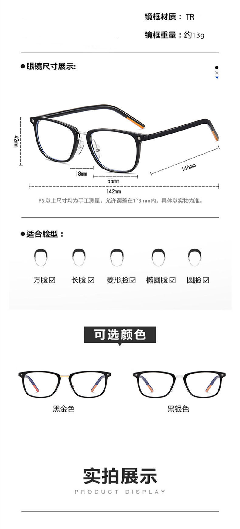 Frame color Black silver frame anti-blue light lenses,Black gold frame anti-blue light lenses,1.56 radiation protection lenses,1.56 anti-blue light lenses,1.61 radiation-proof lenses,1.61 anti-blue light lenses,1.67 radiation protection lenses,1.67 anti-blue light lenses
