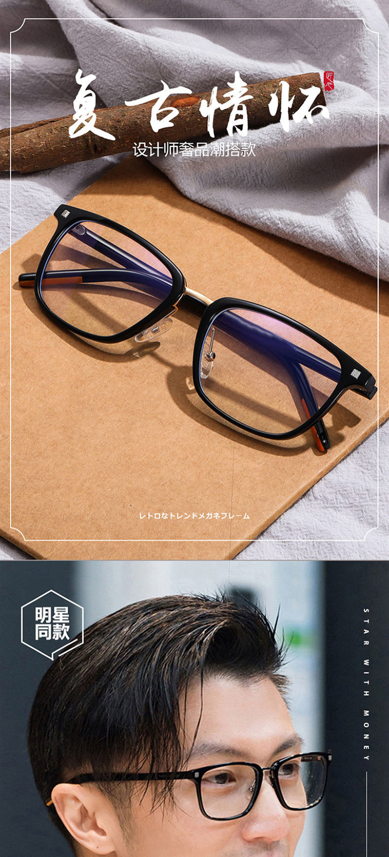 Nicholas Tse glasses frame men's retro TR90 myopia glasses frame anti-blue light anti-radiation flat lens can be equipped with myopia