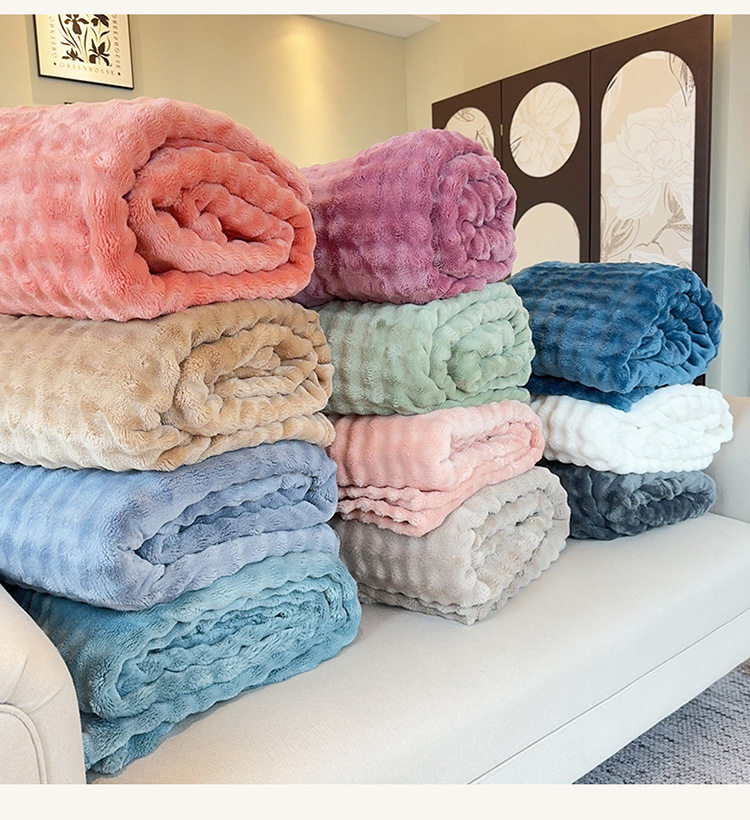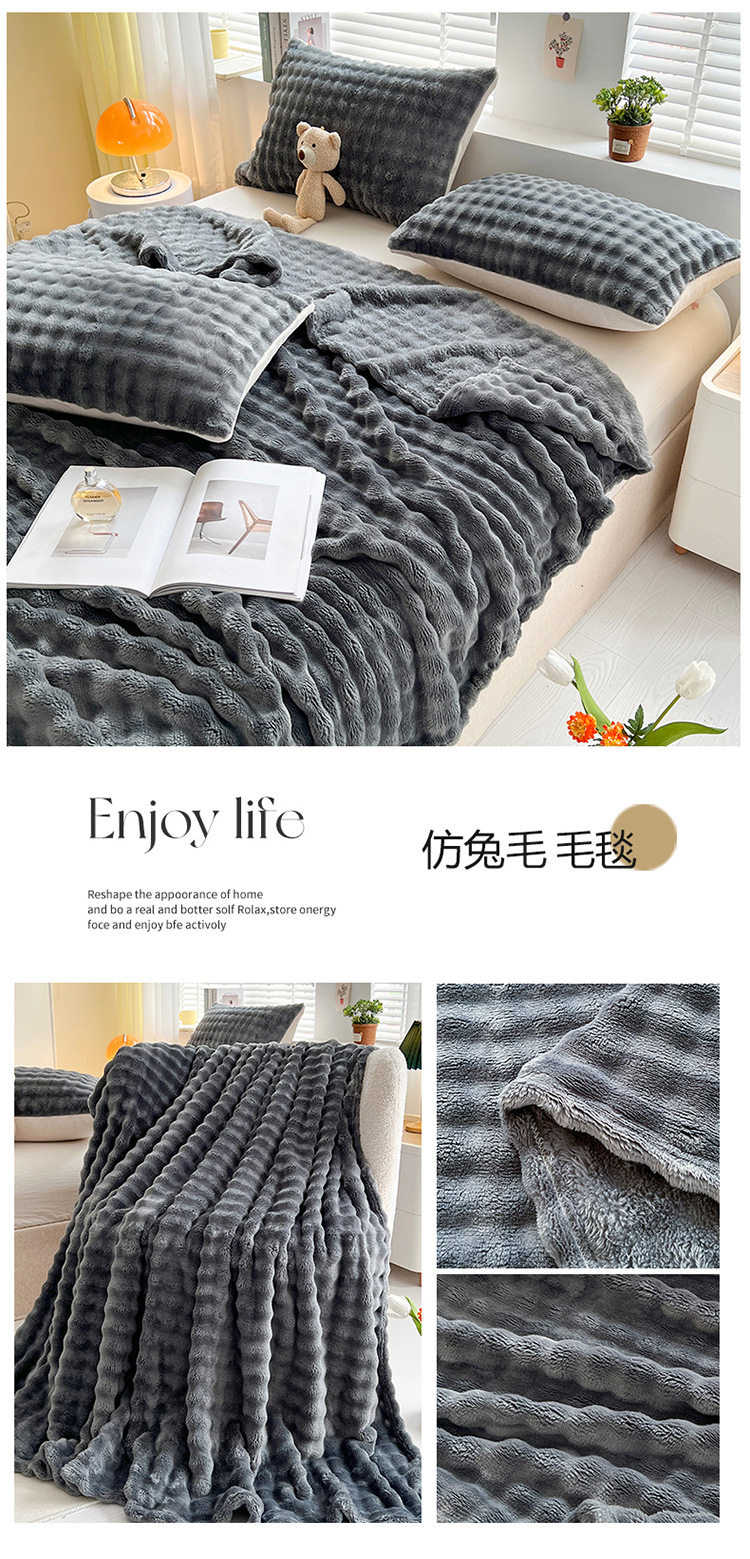 Flannel Bubble Rabbit Plush Blanket Office Sofa Blanket Milk Velvet Double-sided Blanket Foreign Trade Cross-border Blanket
