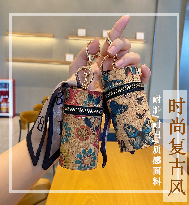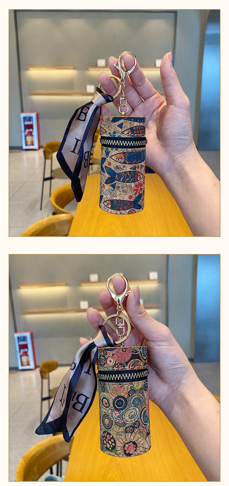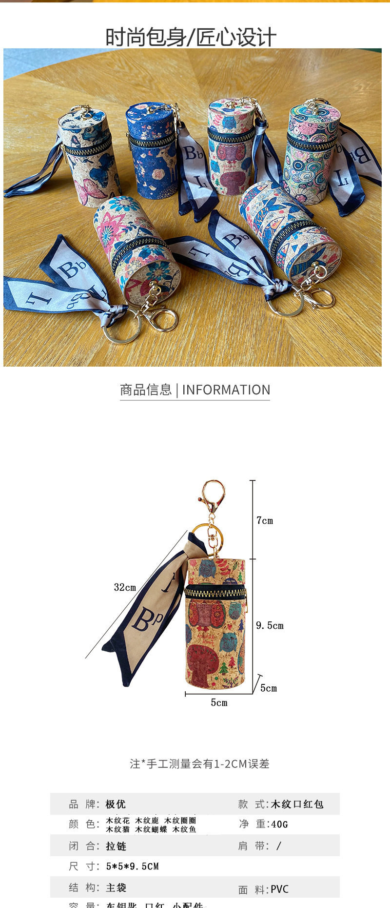 New European and American Retro Paper Wood Grain Bucket Mouth Red Envelope Fashion Cylindrical Headset Lipstick Key Coin Purse