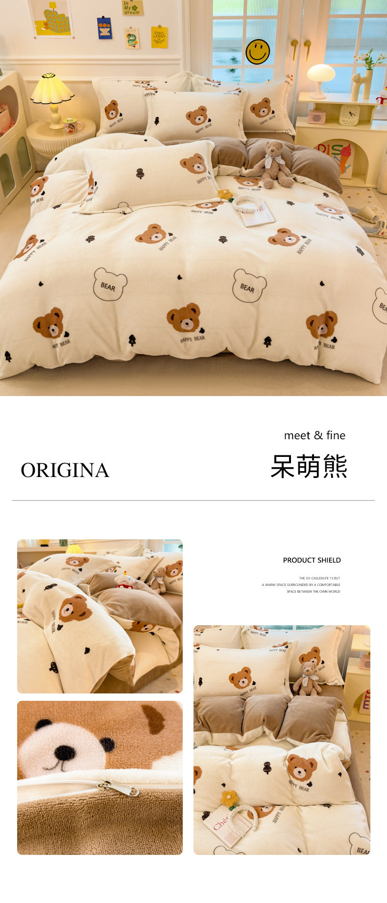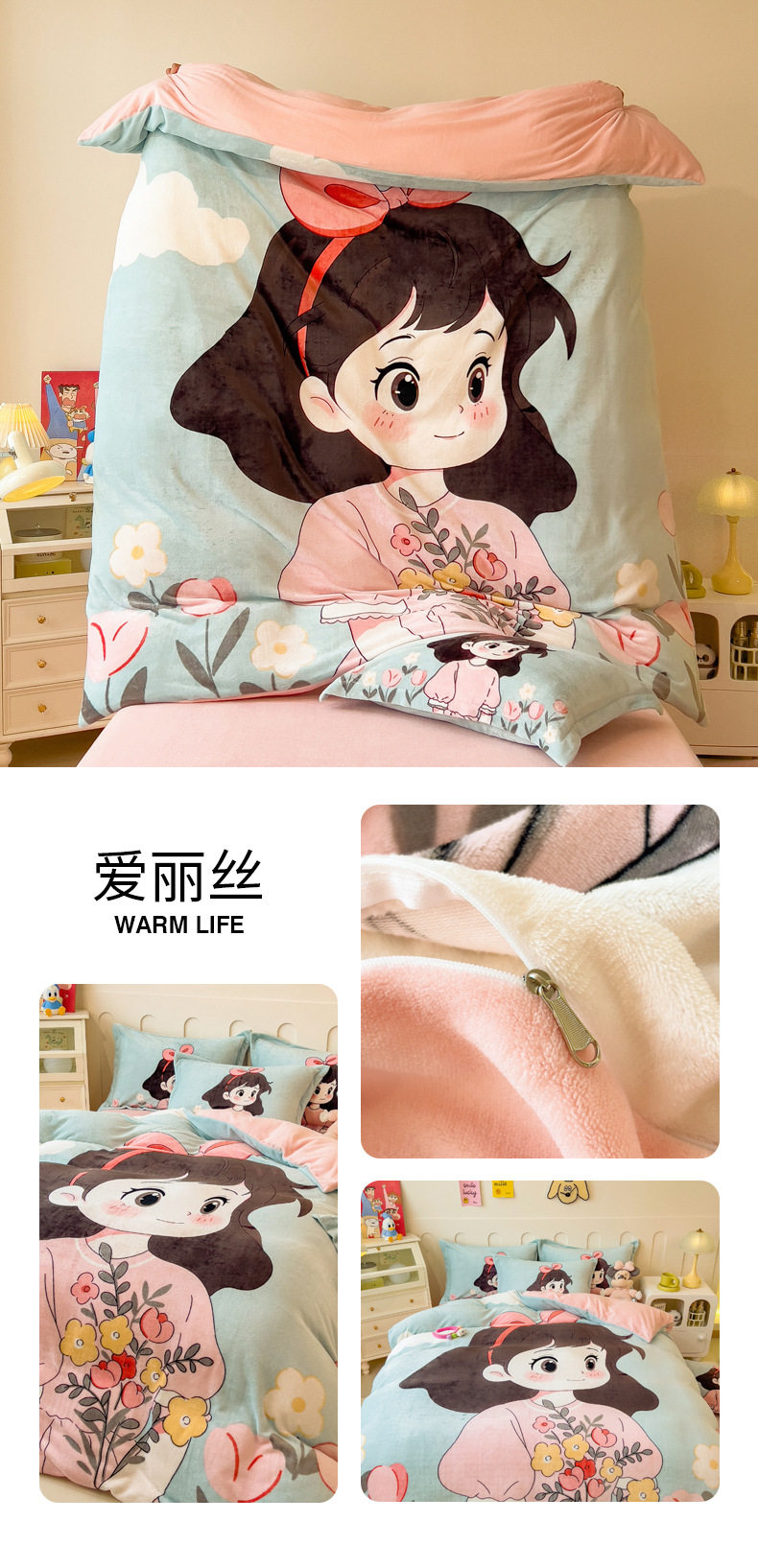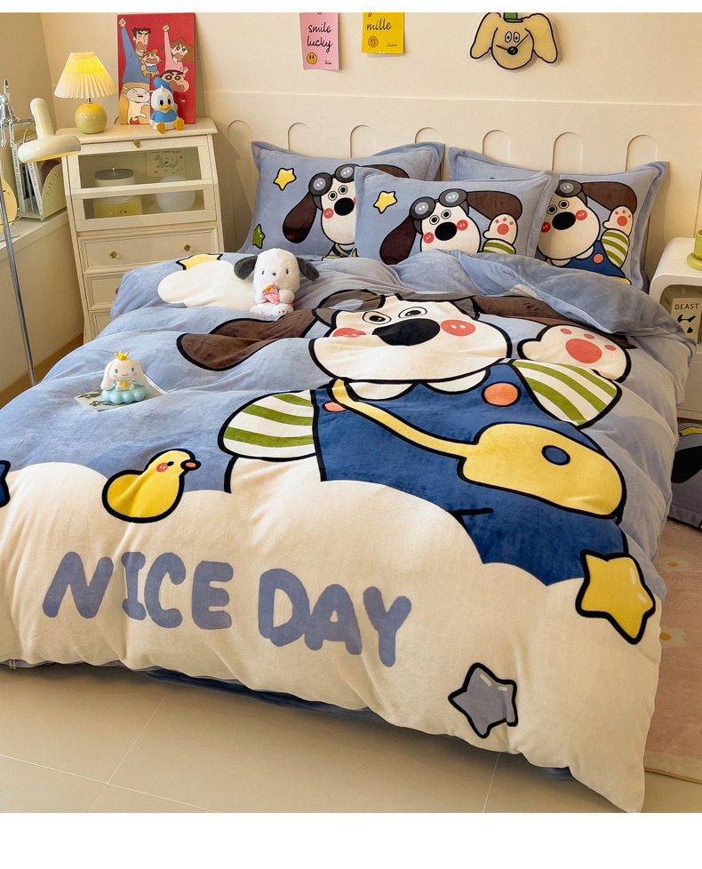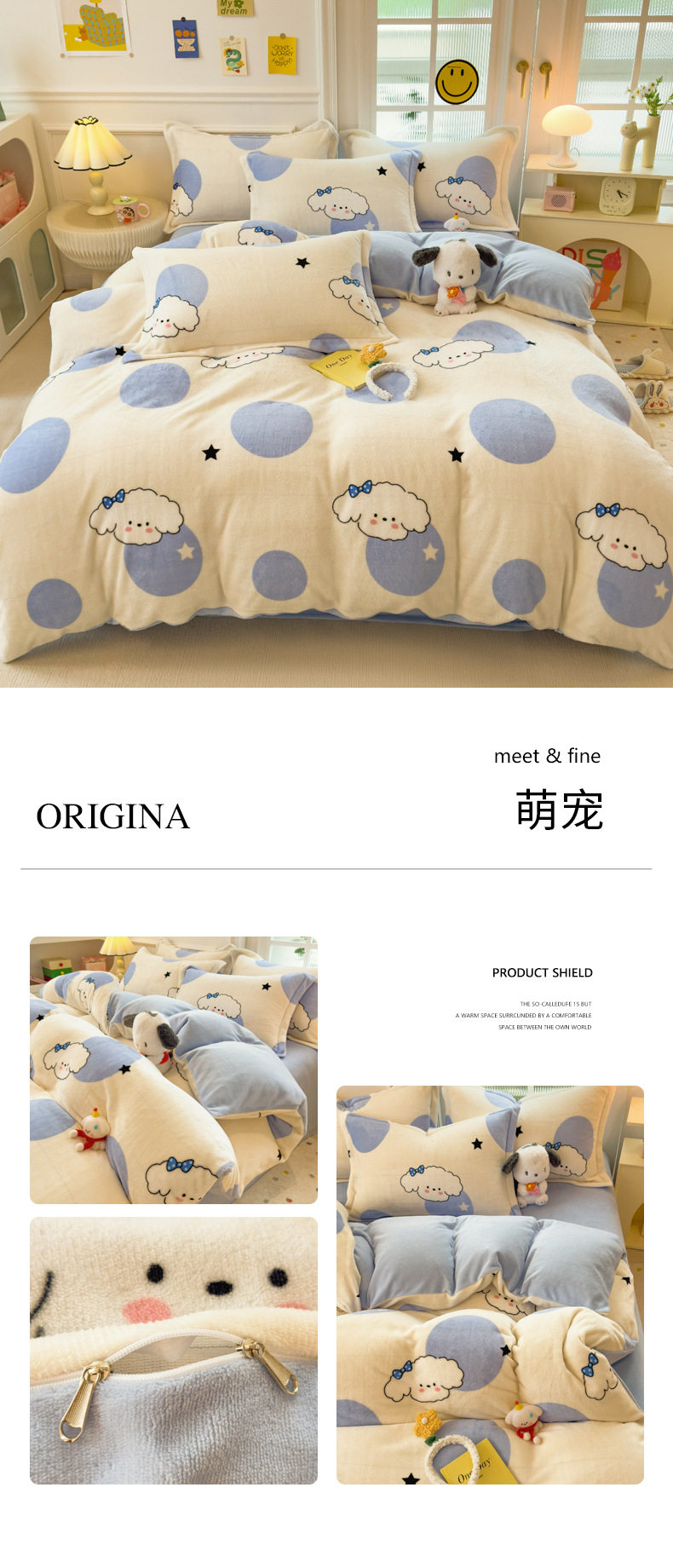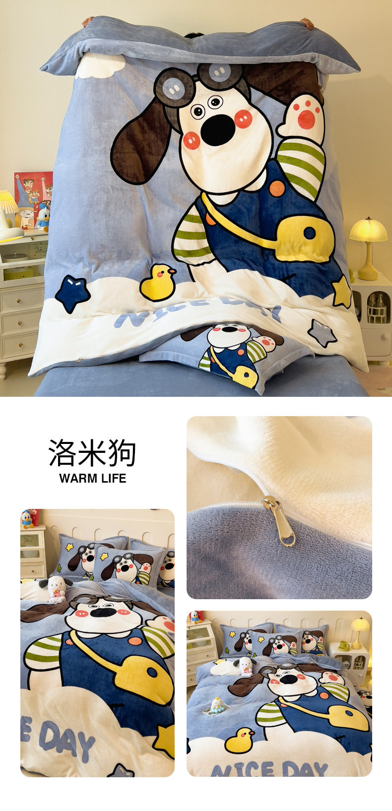 Class a Milk Velvet Large Version Cartoon Four-Piece Winter Thickeneded Coral Velvet Quilt Cover Bed Sheets Student Warm Three-Piece Set